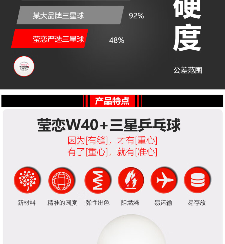 莹恋WINION严选乒乓球三星E40+ 新材料3星专业比赛用白色2盒装(20只)   收藏