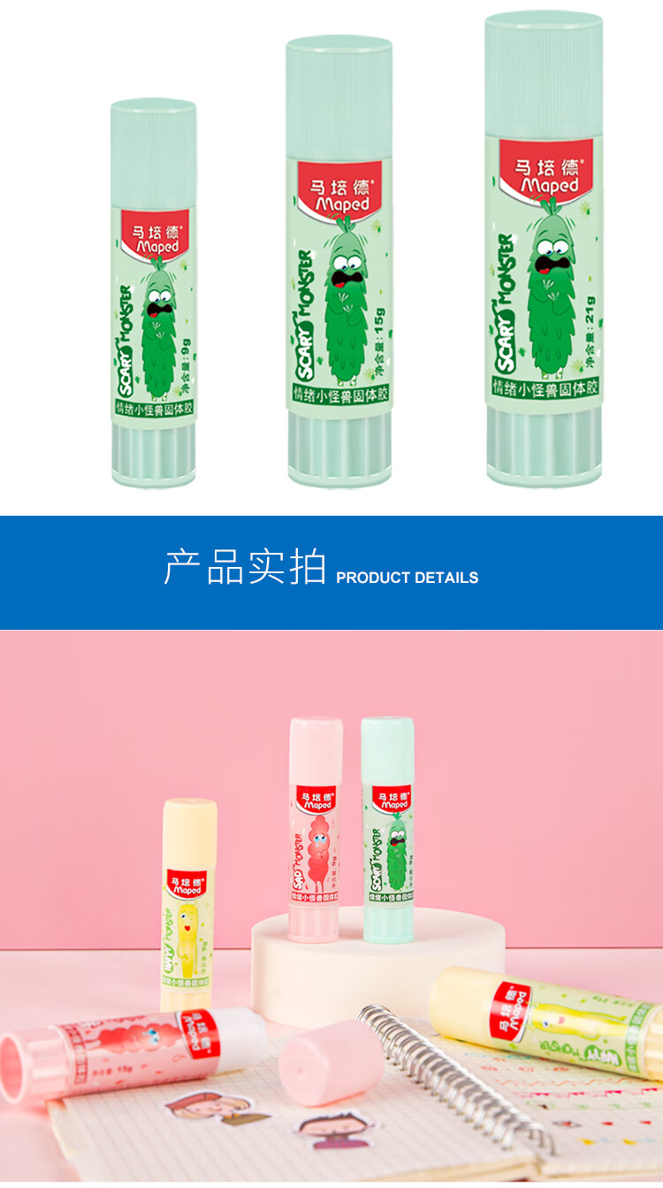 马培德(Maped)情绪小怪兽胶棒9g 高粘度快干耐用安全无甲醛手工DIY胶棒 财务会计办公用品 747010CH   收藏