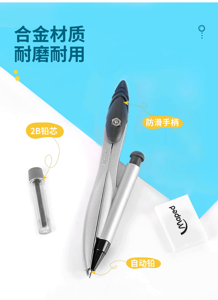 马培德(Maped)优学子经典绘图圆规 初高中考试圆规 学生制图绘图学习工具 199393CH 灰色【自动铅款/7件套】   收藏