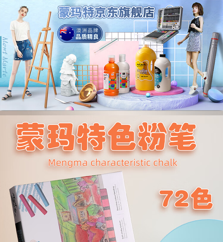 供应商:京东 品牌:蒙玛特(Mont Marte) 产地:中国大陆 重量:0.860 销售单位:盒 包装清单:色粉笔72色*1 售后信息:不支持7天无理由退货