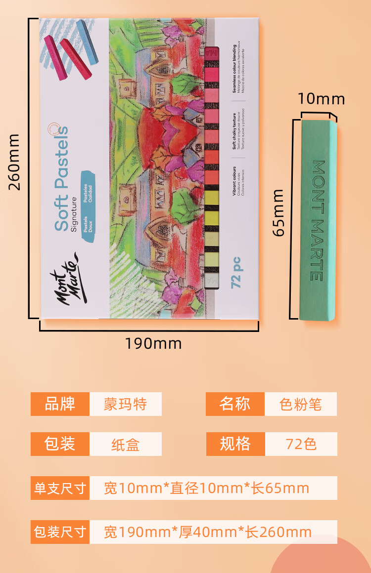 【全网低价】蒙玛特(Mont Marte)色粉笔72色 彩色粉笔画画粉画棒美术绘画粉彩棒儿童彩笔套装学生色粉画软色粉MMPT0031美术写生   收藏