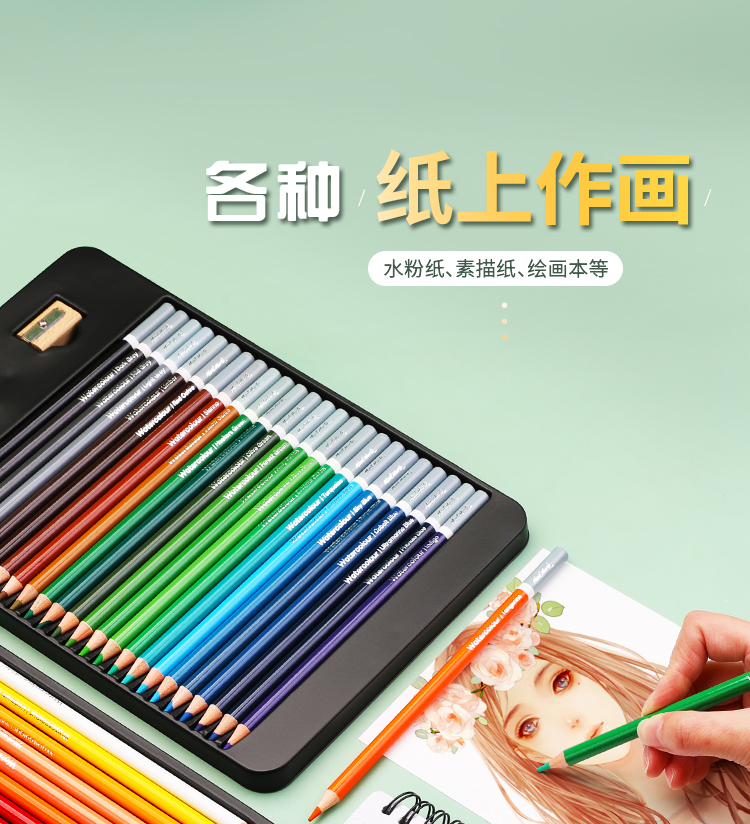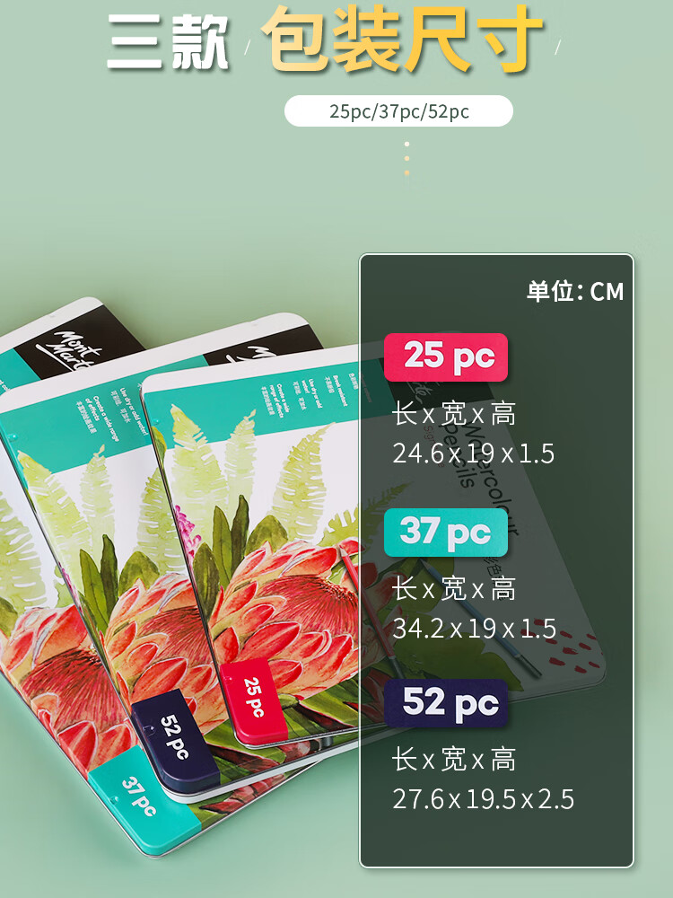 蒙玛特(Mont Marte)彩铅48色 彩色铅笔水溶性彩铅笔美术画笔画画铅笔套装 手绘色彩学生绘画笔铁盒装MPN0153美术写生   收藏