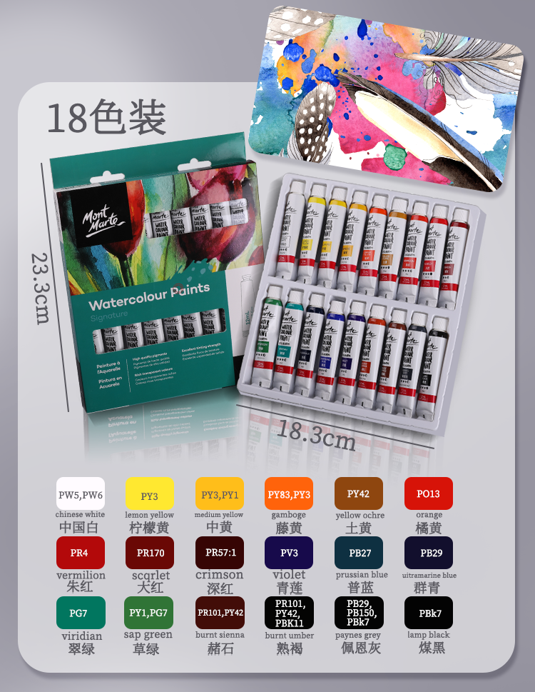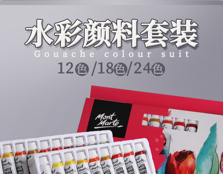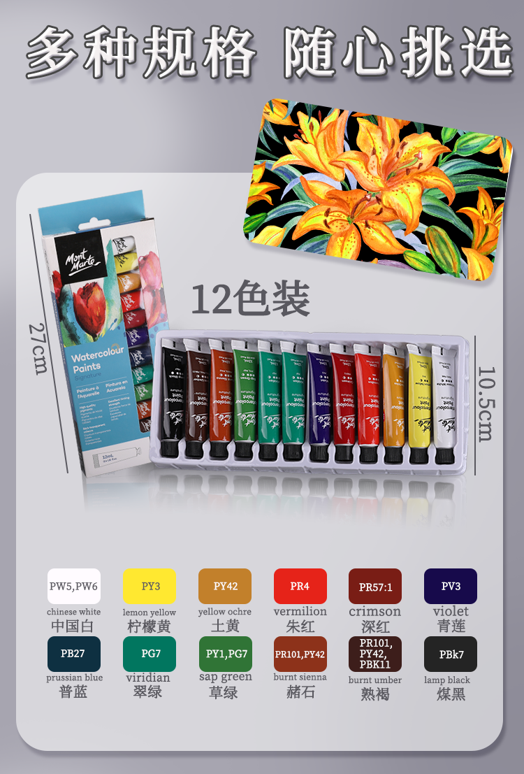 【全网低价】蒙玛特(Mont Marte)水彩颜料24色12ml 水彩画套装儿童美术画画可水洗颜料 色彩颜料学生绘画透明颜料PMHS0049美术写生   收藏