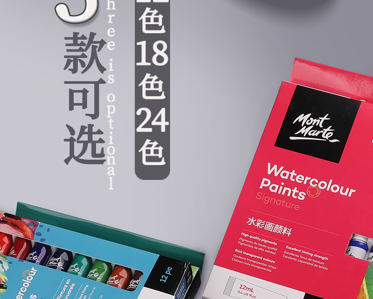 • 【全网低价】蒙玛特(Mont Marte)水彩颜料24色12ml 水彩画套装儿童美术画画可水洗颜料 色彩颜料学生绘画透明颜料PMHS0049美术写生