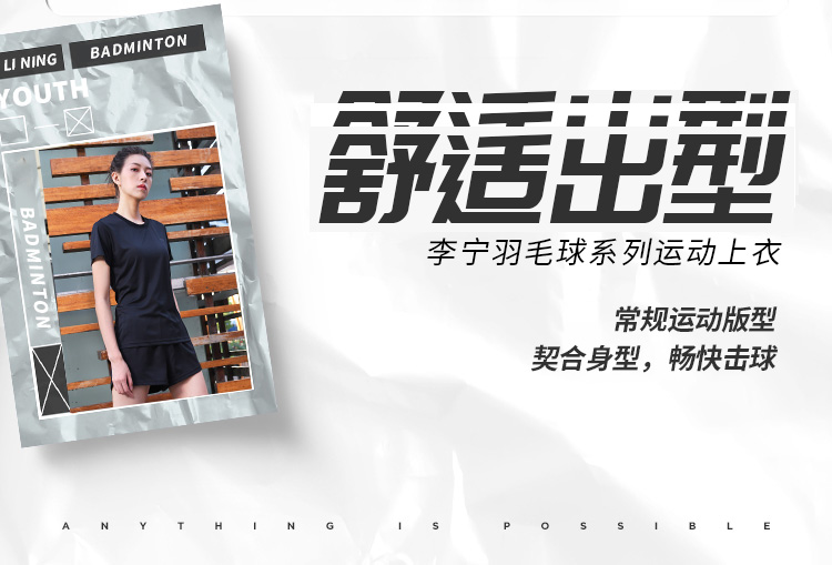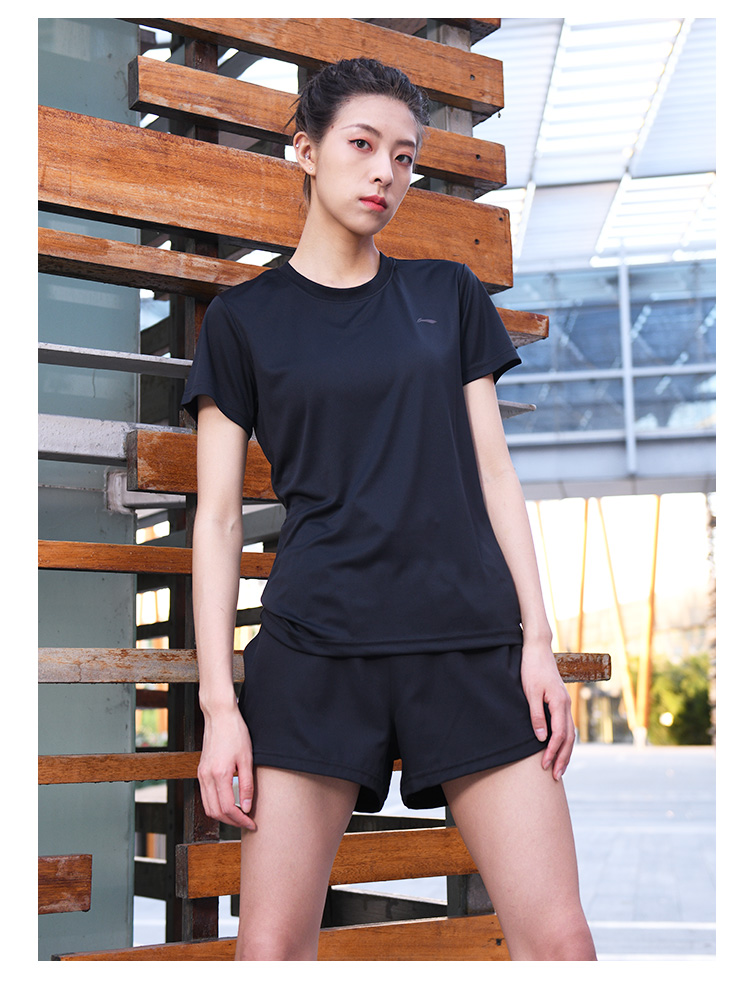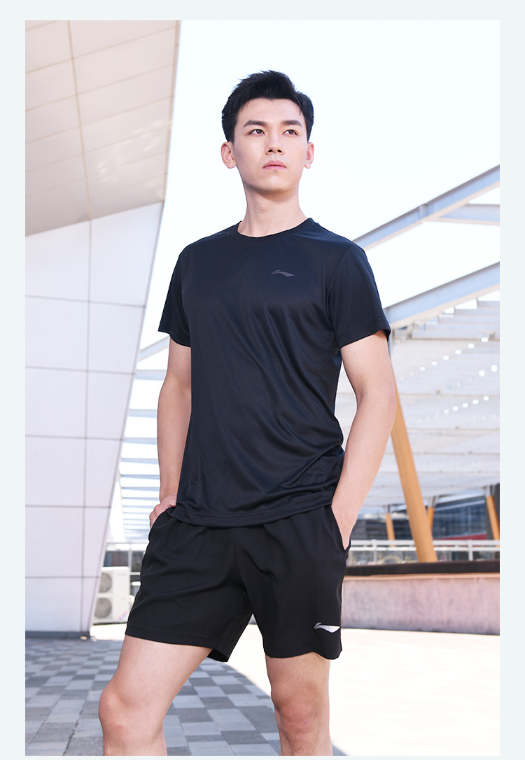 • 李宁(LI-NING)李宁羽毛球服短袖运动速干弹力春夏装简约休闲 黑色ATSP416 XL码