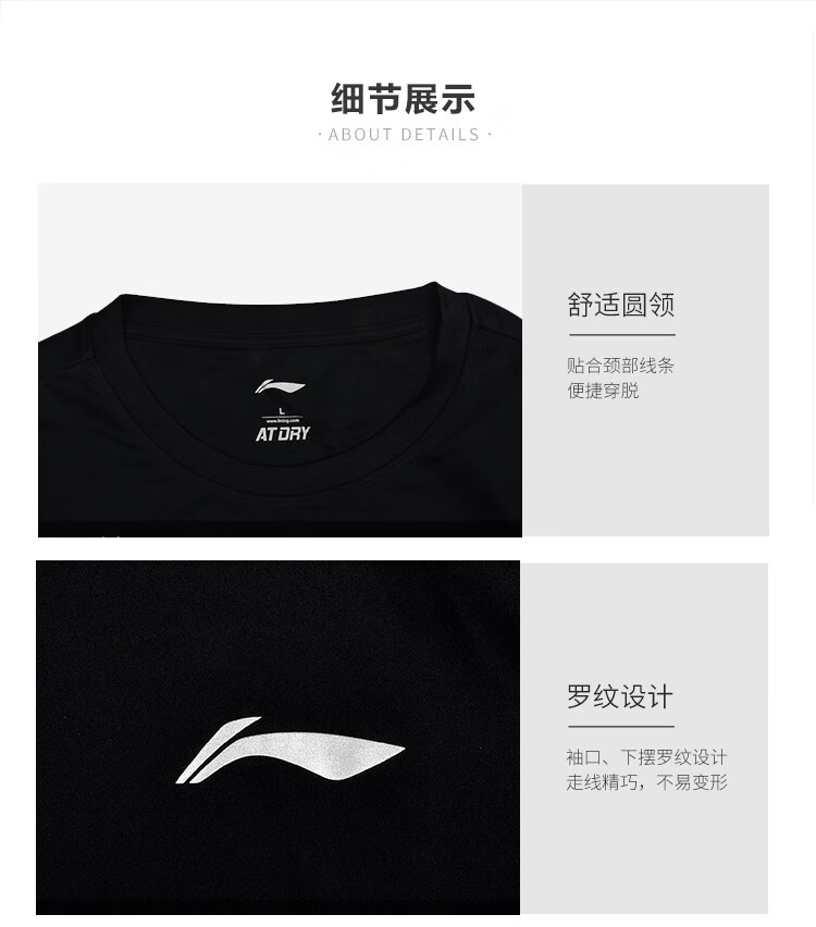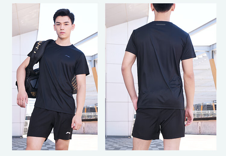 李宁(LI-NING)李宁羽毛球服短袖运动速干弹力春夏装简约休闲 黑色ATSP416 XL码   收藏