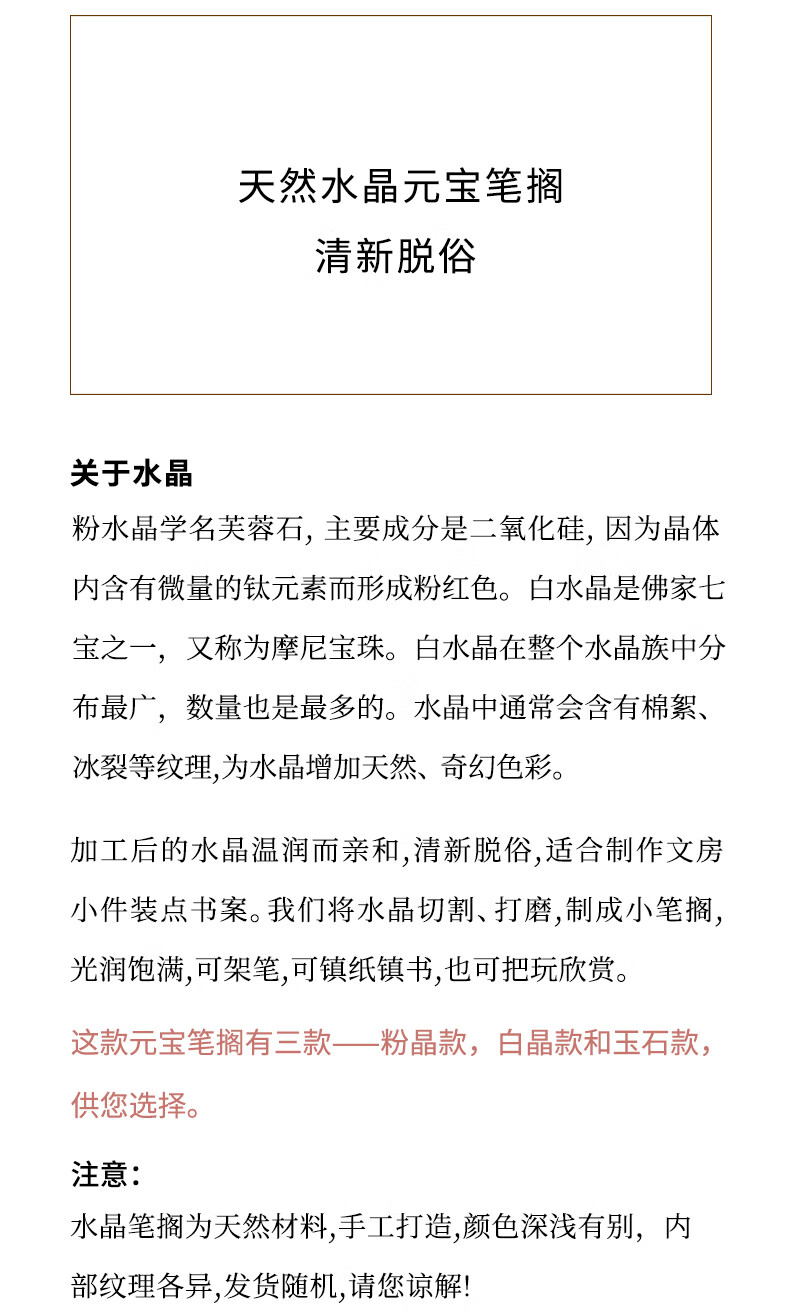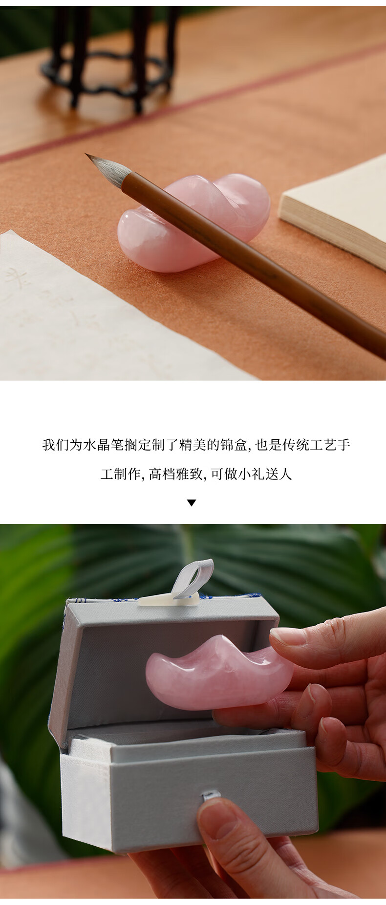 • 漢墨 淡粉色冰晶毛笔笔架 中国风可爱多功能水晶笔山笔搁 文房四宝礼品礼物把玩摆件礼盒装
