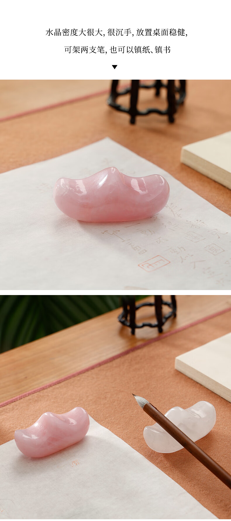 漢墨 淡粉色冰晶毛笔笔架 中国风可爱多功能水晶笔山笔搁 文房四宝礼品礼物把玩摆件礼盒装   收藏