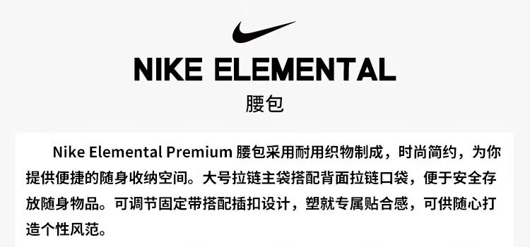 • 耐克(NIKE)男女腰包 单肩包斜挎包胸包休闲包DN2556-010 黑