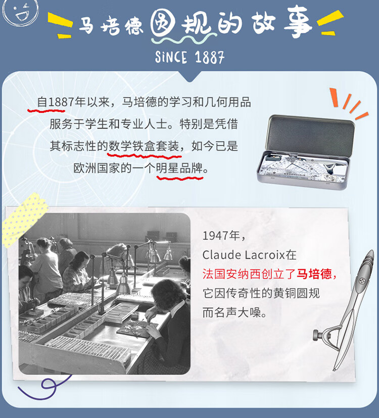 马培德(Maped)【春节送货】优学子经典绘图圆规 初高中考试圆规 学生制图绘图学习工具 194108CH 灰色   收藏