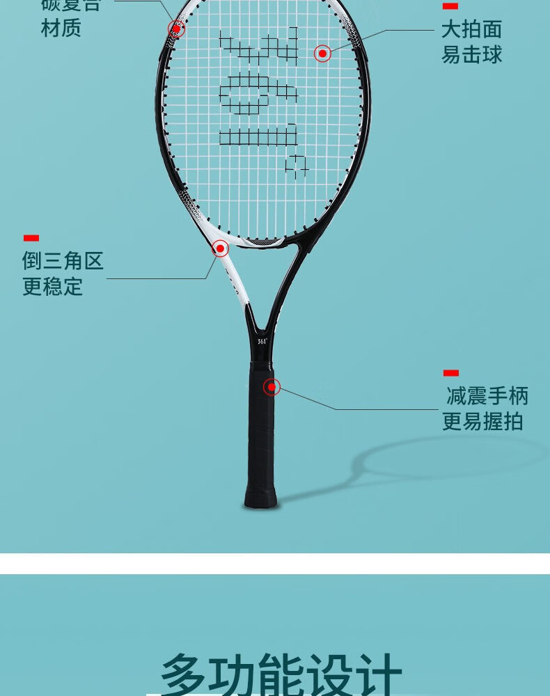 供应商:京东 品牌:361° 产地:中国大陆 重量:1.050 销售单位:支 包装清单:网球拍*1 售后信息:不支持7天无理由退货