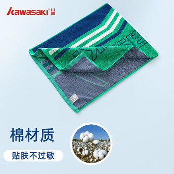 川崎(KAWASAKI)羽毛球运动毛巾网球健身房跑步乒乓球吸汗擦汗纯棉舒适浴巾KTW-987青绿100CM*40CM   收藏