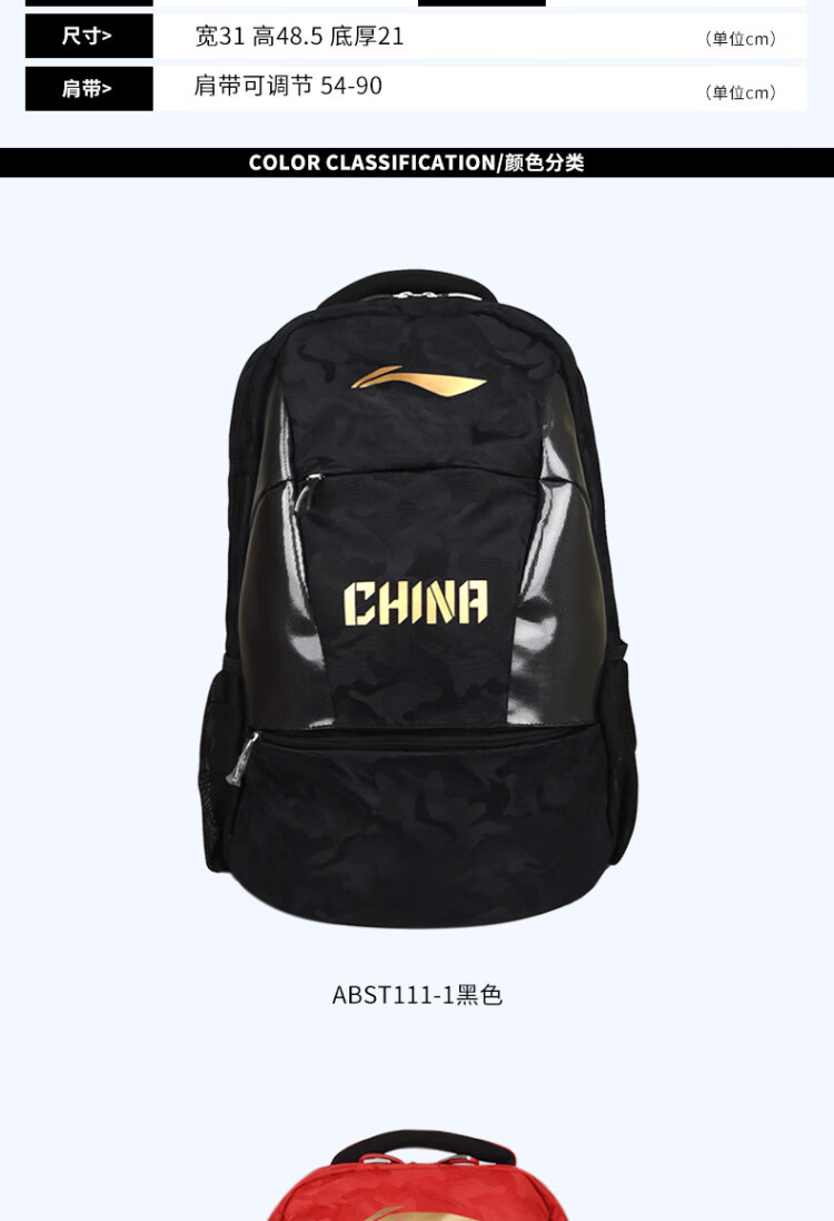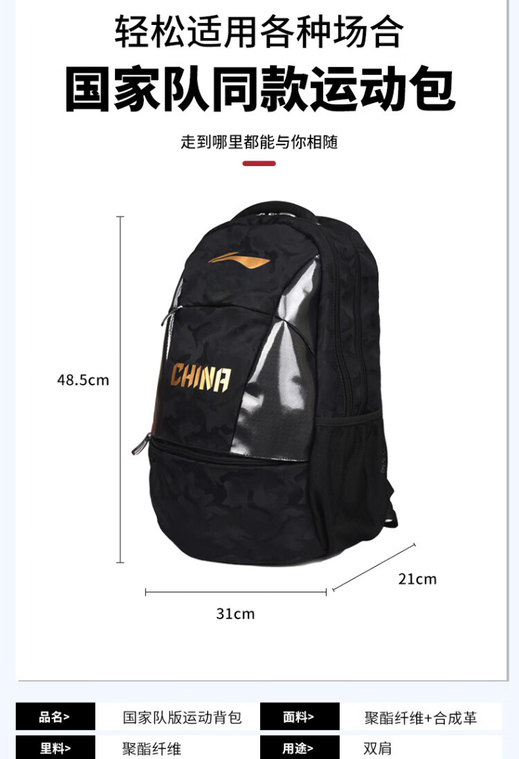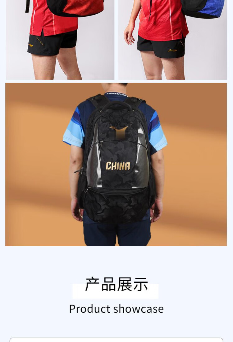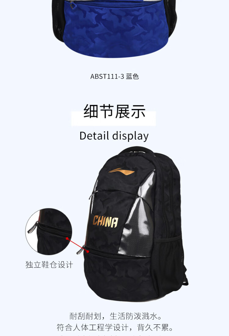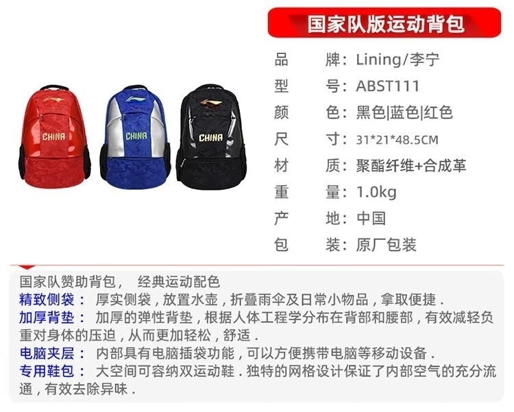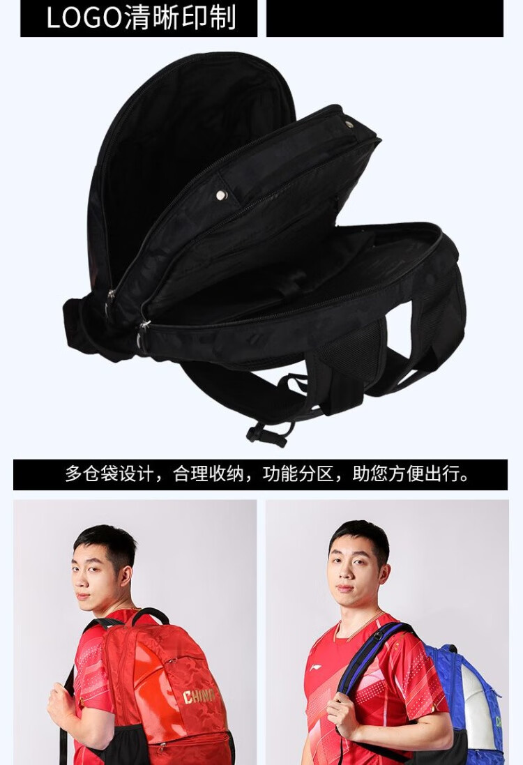 李宁(LI-NING)乒乓球包双肩背包国家队同款 乒乓球运动包ABST111蓝色   收藏