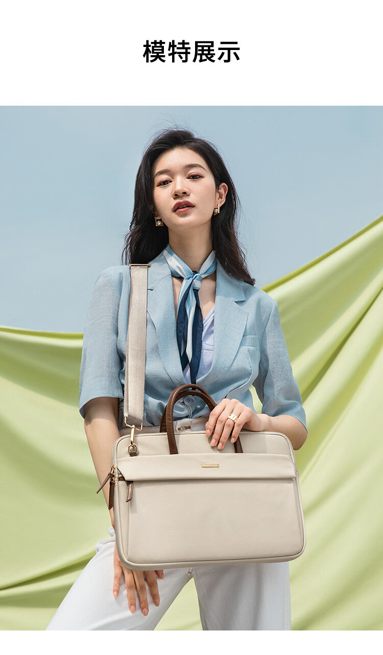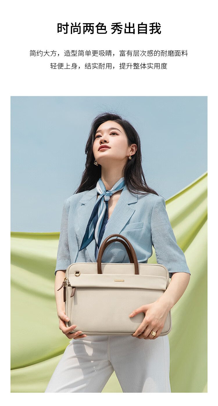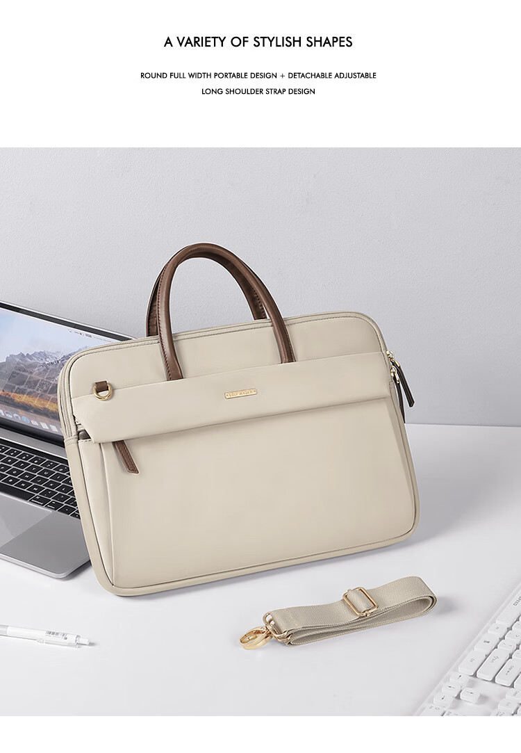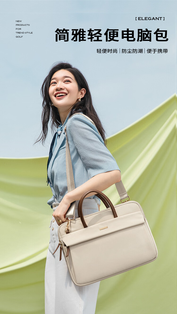 高尔夫(GOLF)电脑包女公文包14英寸手提单肩包防泼水苹果笔记本电脑包 果仁杏 |