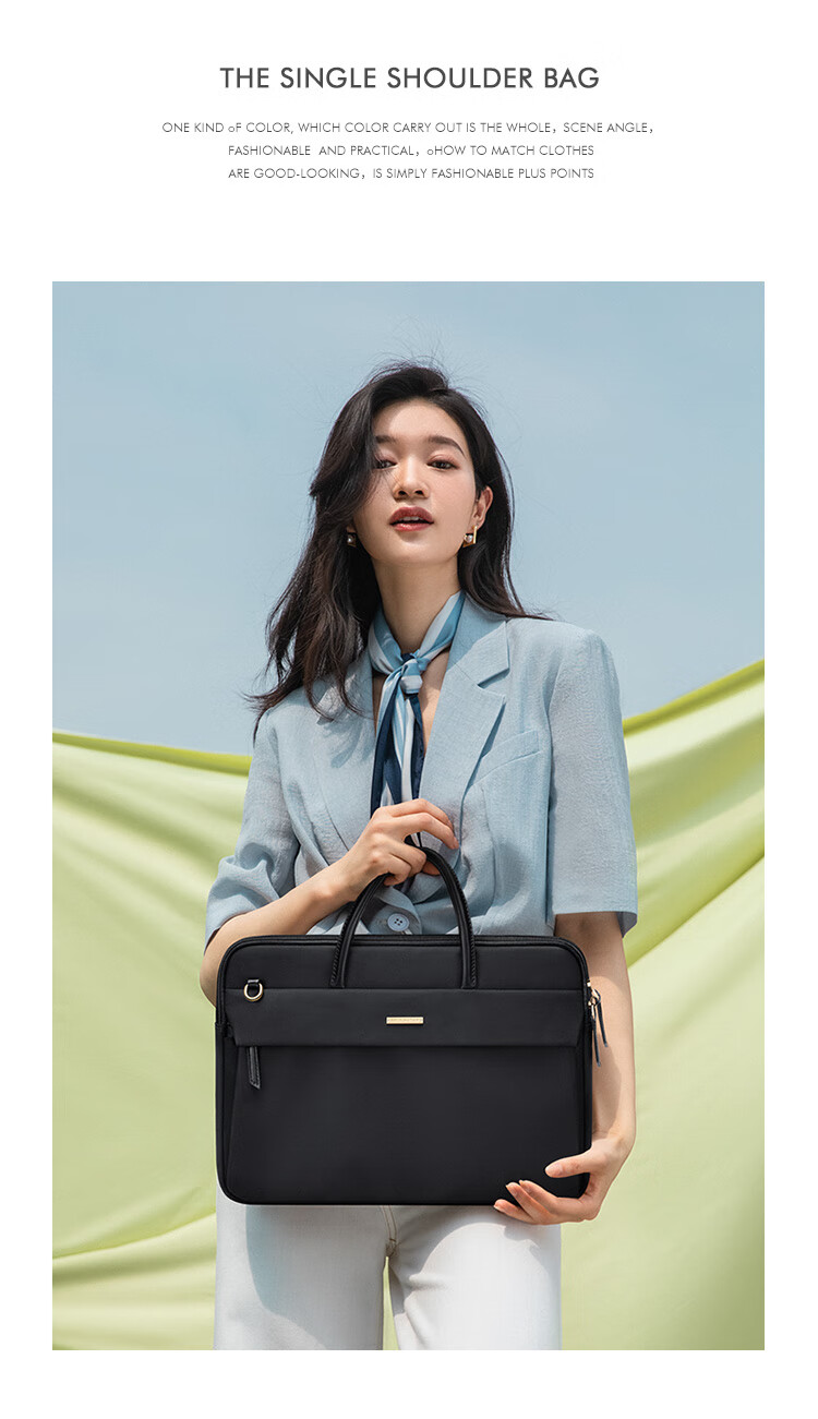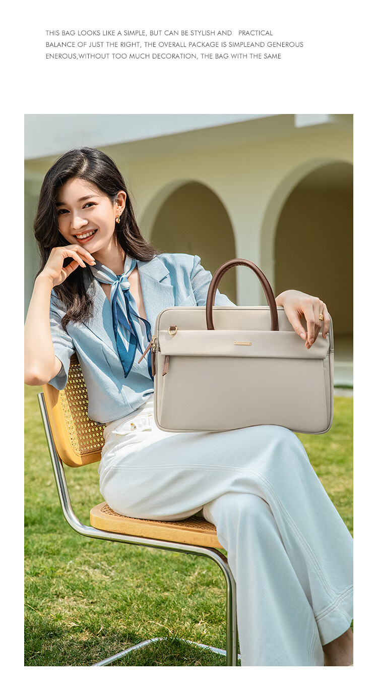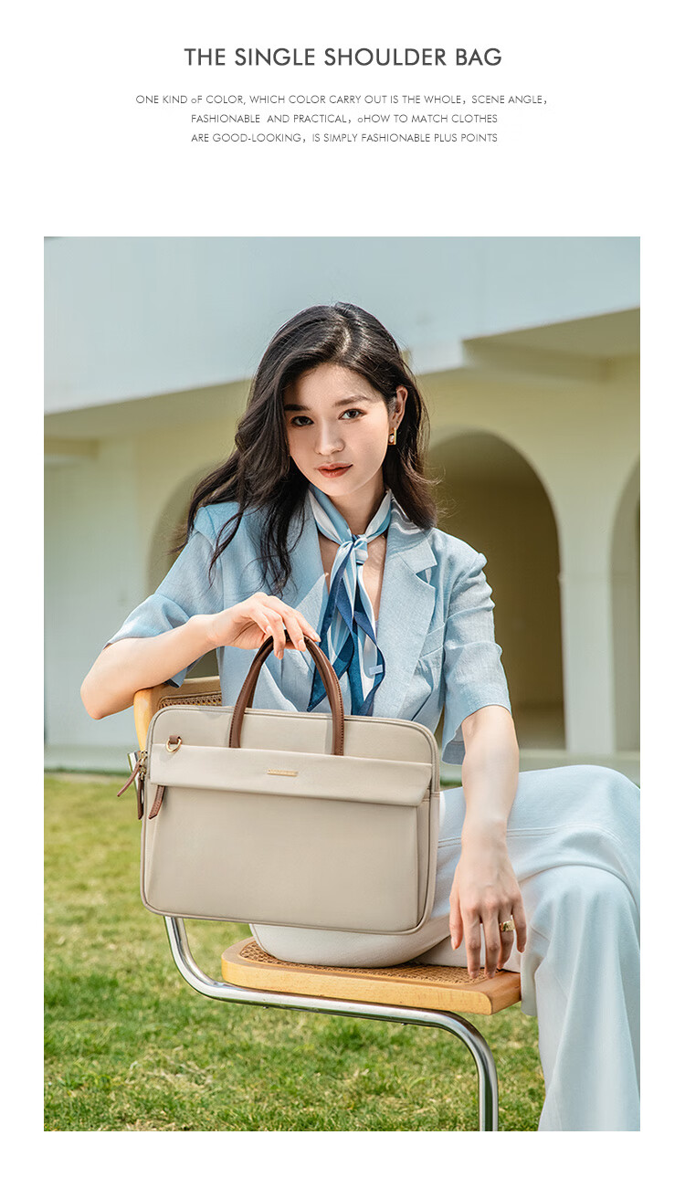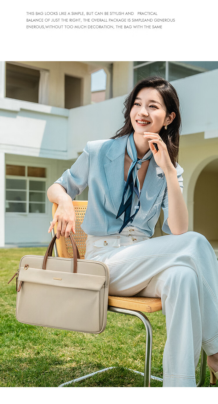 高尔夫(GOLF)电脑包女公文包14英寸手提单肩包防泼水苹果笔记本电脑包 果仁杏 |