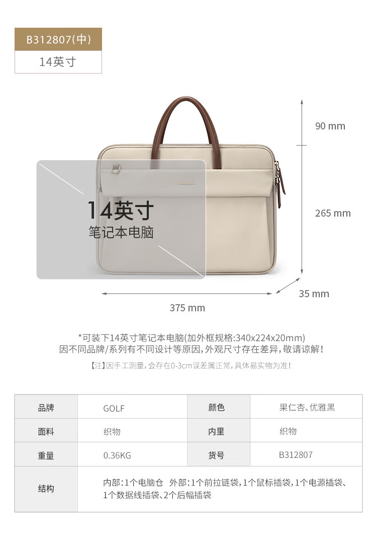 规格 SIZE :电脑包_果仁杏14英寸 |