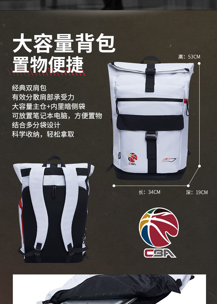 • 李宁篮球系列背包男女同款大容量分袋设计肩带可调ABST027