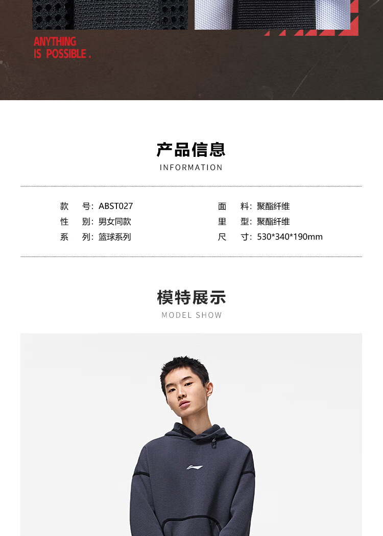李宁篮球系列背包男女同款大容量分袋设计肩带可调ABST027   收藏