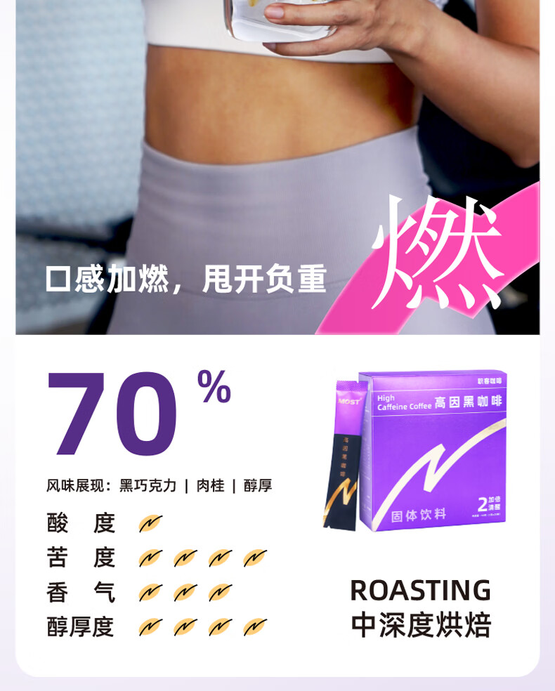 摩氏(MOST)高因速溶黑咖啡0反式脂肪酸暖冬运动健身年货节20杯   收藏