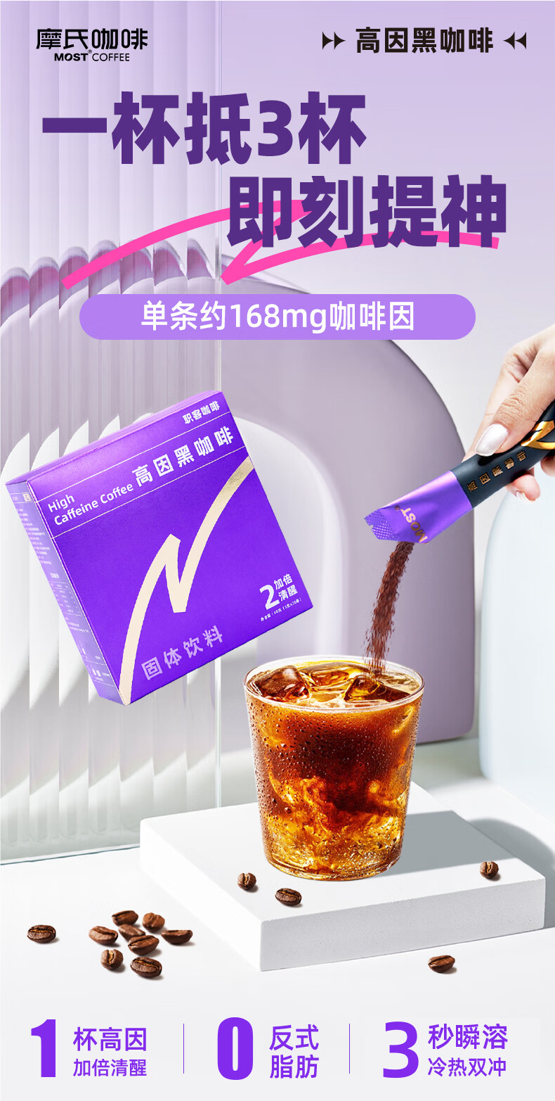 • 摩氏(MOST)高因速溶黑咖啡0反式脂肪酸暖冬运动健身年货节20杯