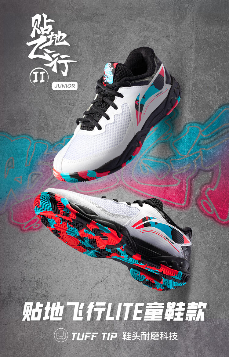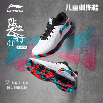 • 李宁儿童羽毛球鞋贴地飞行2Junior大童专业训练鞋 白/黑色-1 33