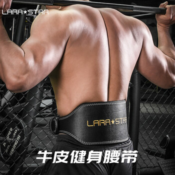 劳拉之星牛皮健身腰带男硬拉深蹲运动专业力量举重训练护腰带 黑色宽版L   收藏