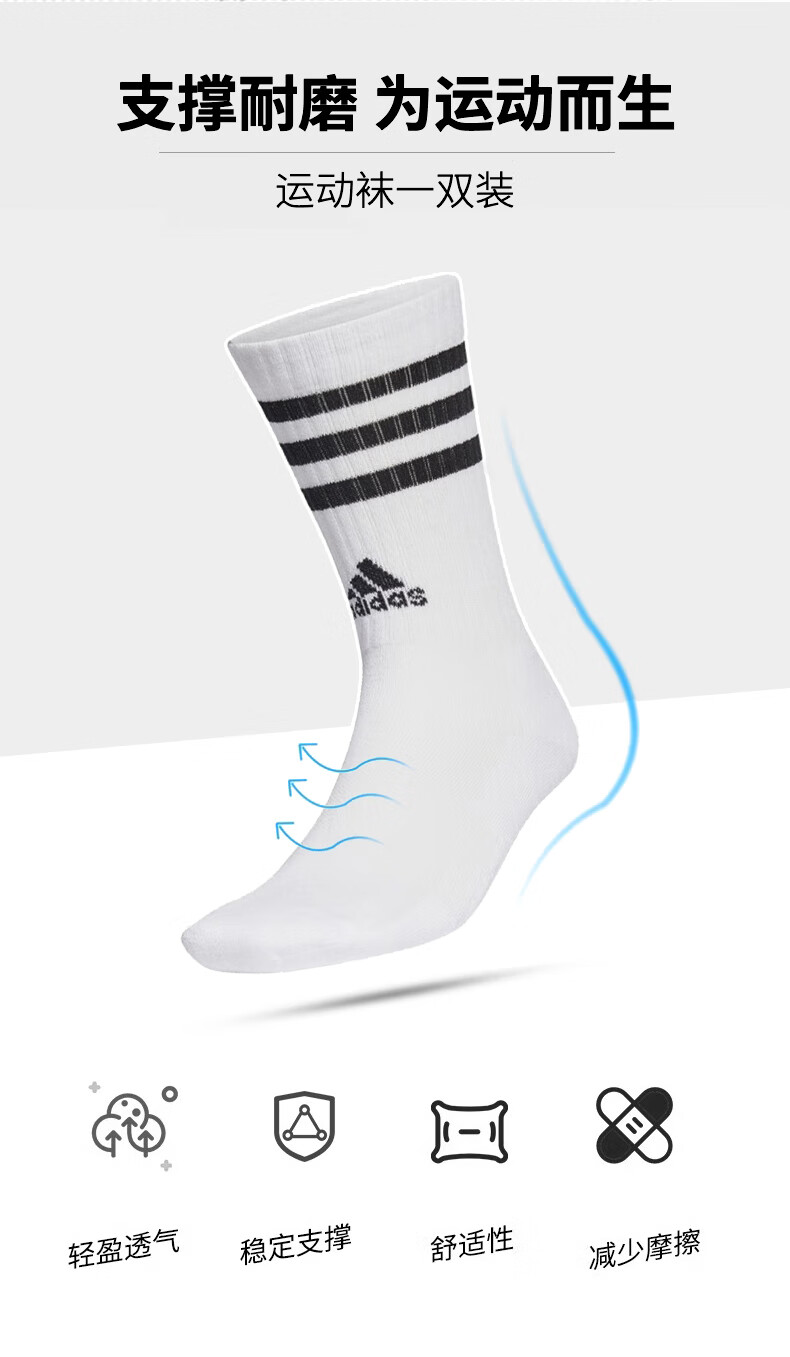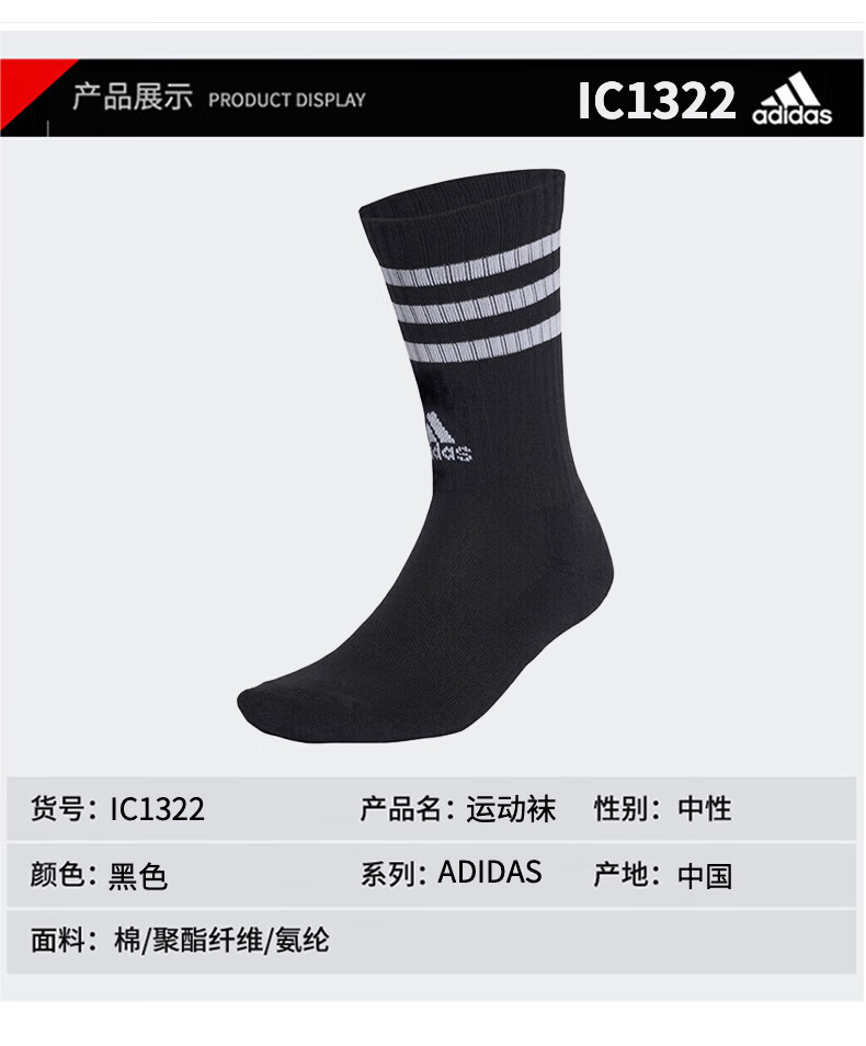 阿迪达斯运动长袜秋冬保暖袜子男女百搭休闲羽毛球袜IC1322 黑色 L   收藏