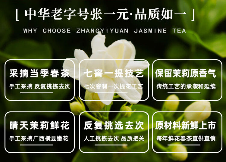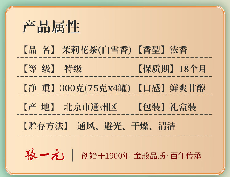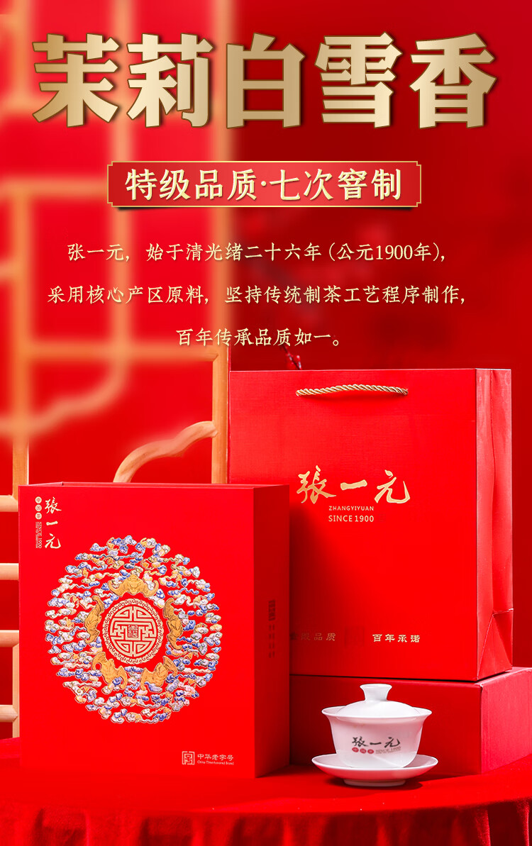 • 张一元茉莉花茶特级浓香白雪香五福礼盒300g 茶叶国潮年货礼盒送礼佳选