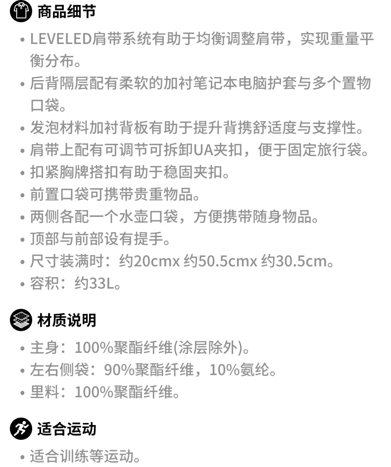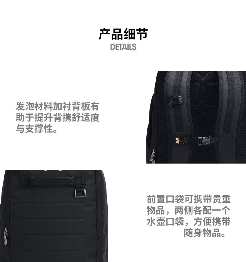 安德玛(Under Armour)春夏张伟丽同款Contain男女训练运动双肩背包1378413黑色001 均码   收藏