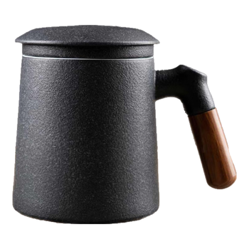 平仄茶水分离杯泡茶杯380ml木柄陶瓷杯马克杯高颜值办公室水杯茶杯   收藏