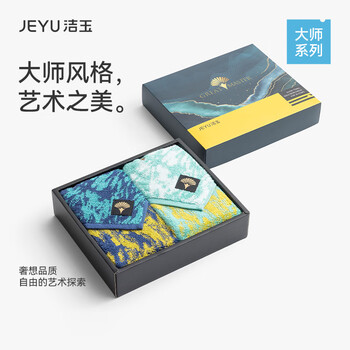 洁玉毛巾110g纯棉高档礼盒款精梳新疆棉 罗纳河 蓝+绿团购礼赠   收藏