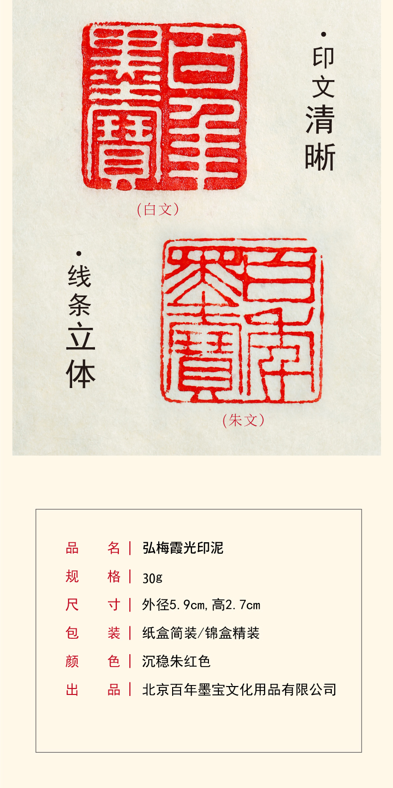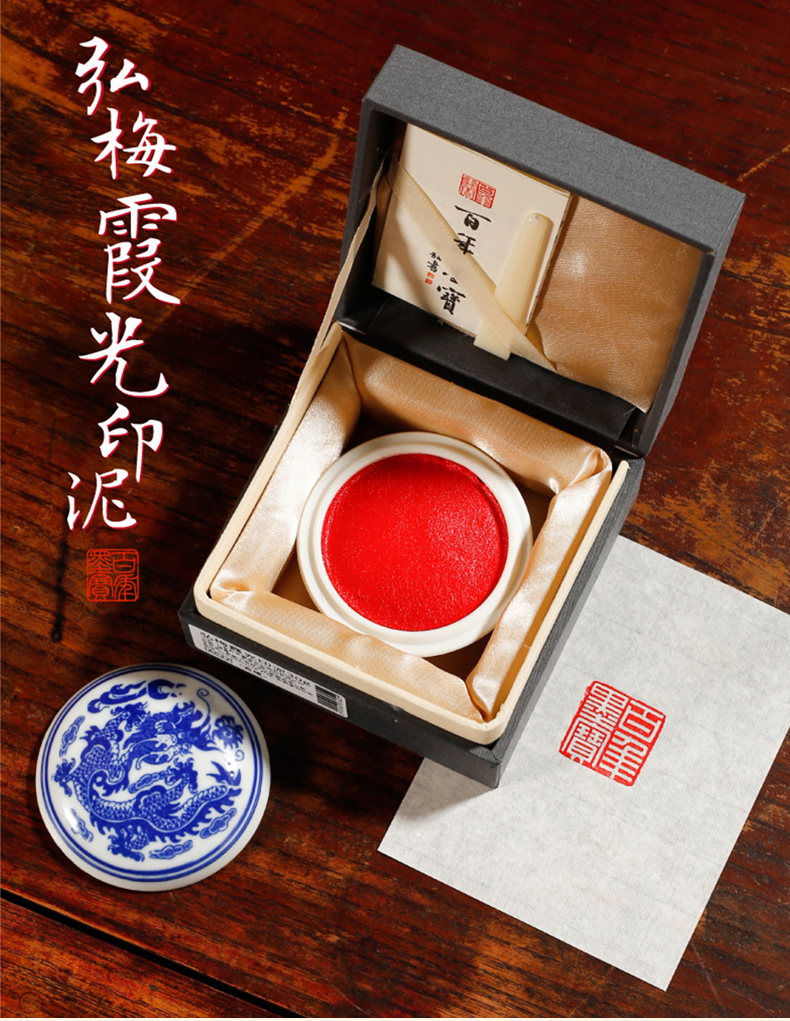 • 漢墨 百年墨宝霞光印泥30g 朱砂手印篆刻印章用红色书画书法印泥盒 文房四宝送礼锦盒装