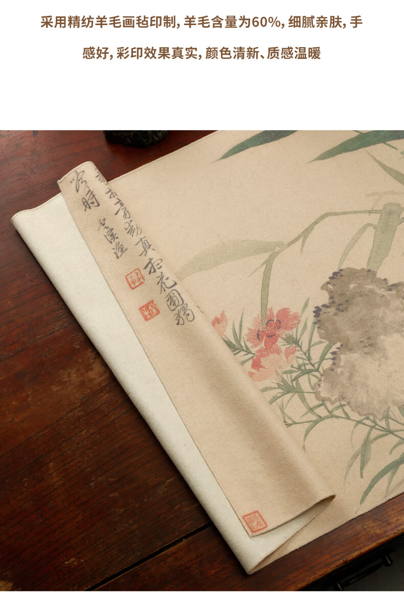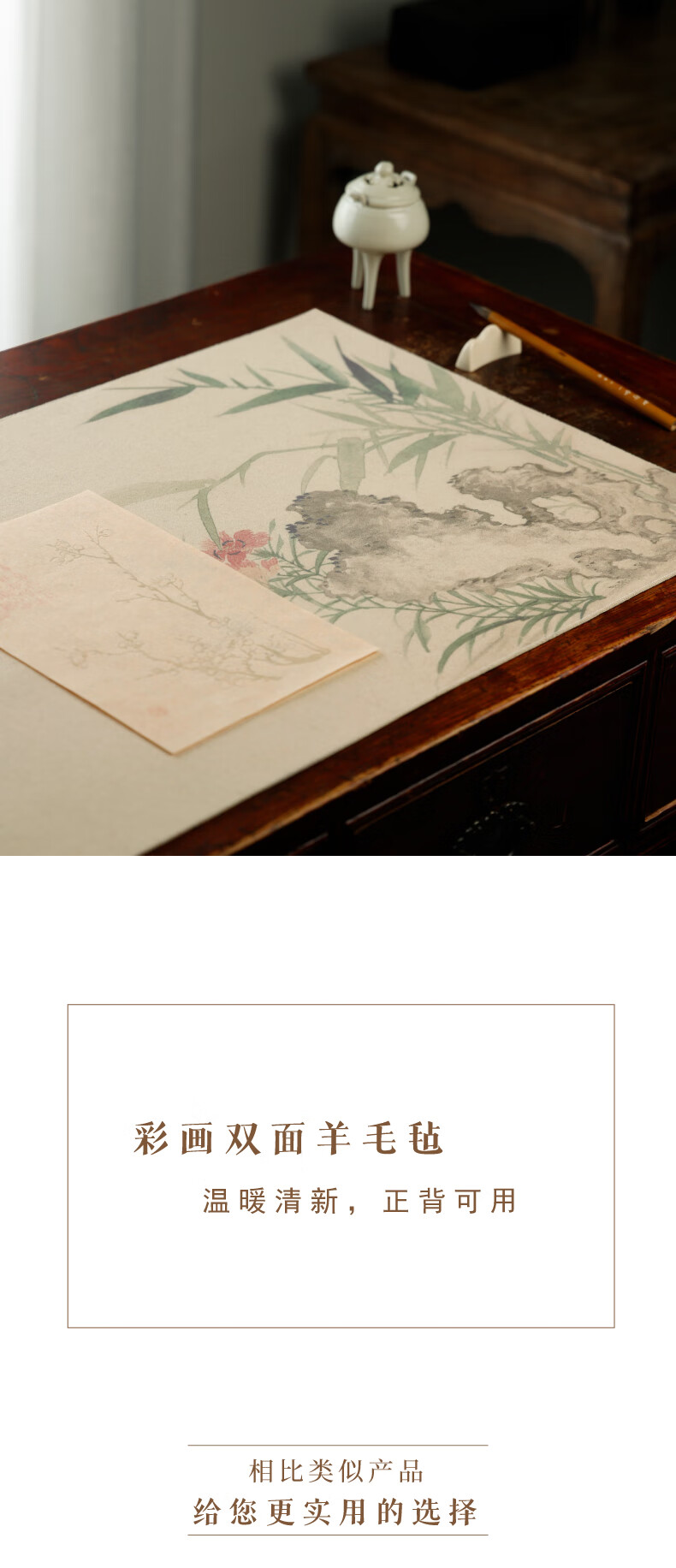 漢墨彩画锁边羊毛毛毡 创意卷装双层可用书法初夏毛毡垫 文房四宝毛笔练字作品专用毛毡布桌垫礼盒装   收藏