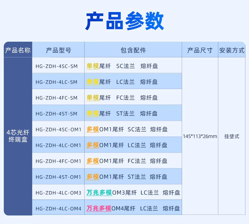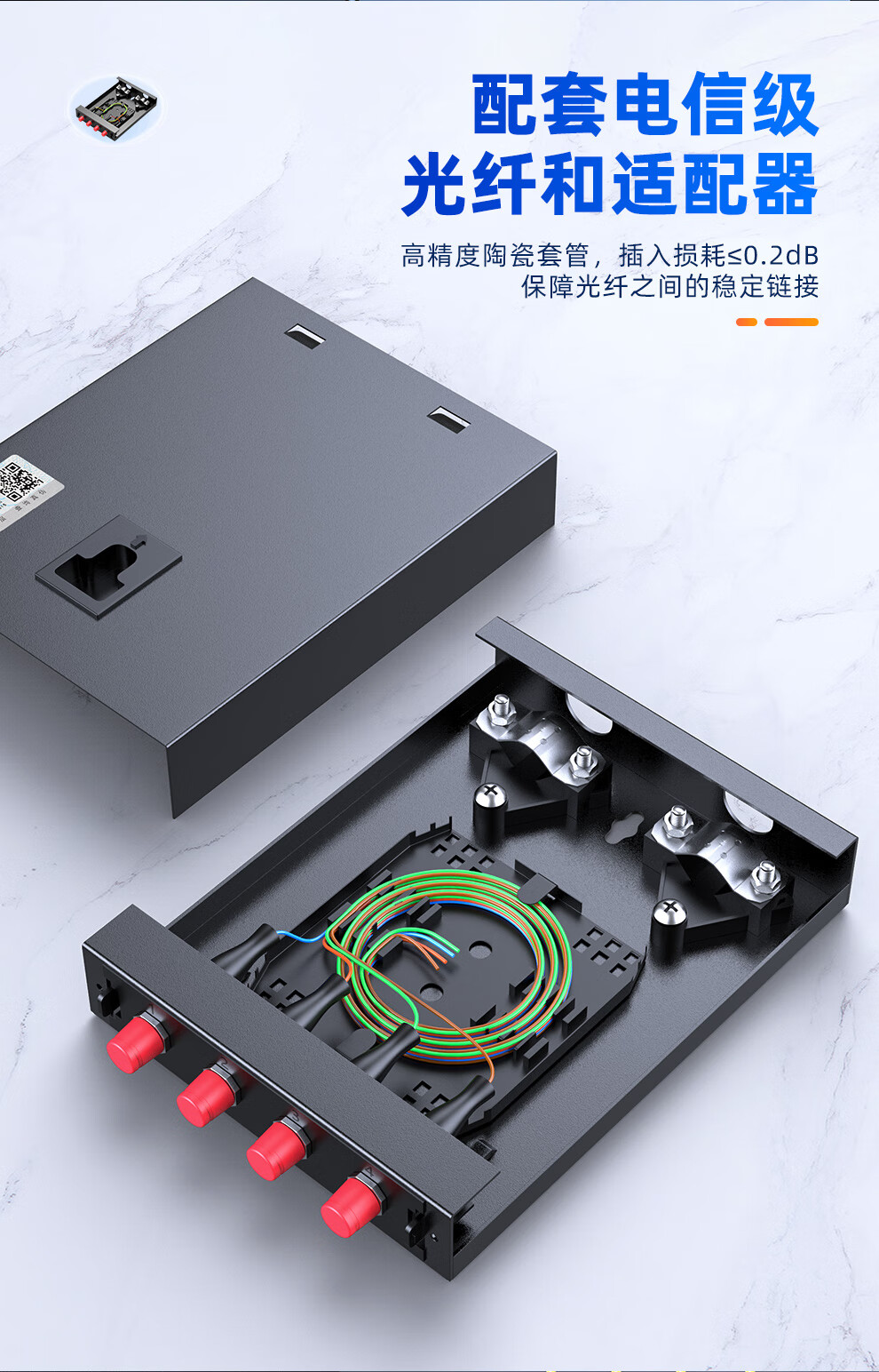• 慧谷 光纤终端盒4口 4芯SC单模满配尾纤法兰盘 光缆熔接盒 光纤配线架接续盒 壁挂式 HG-ZDH-4SC-SM
