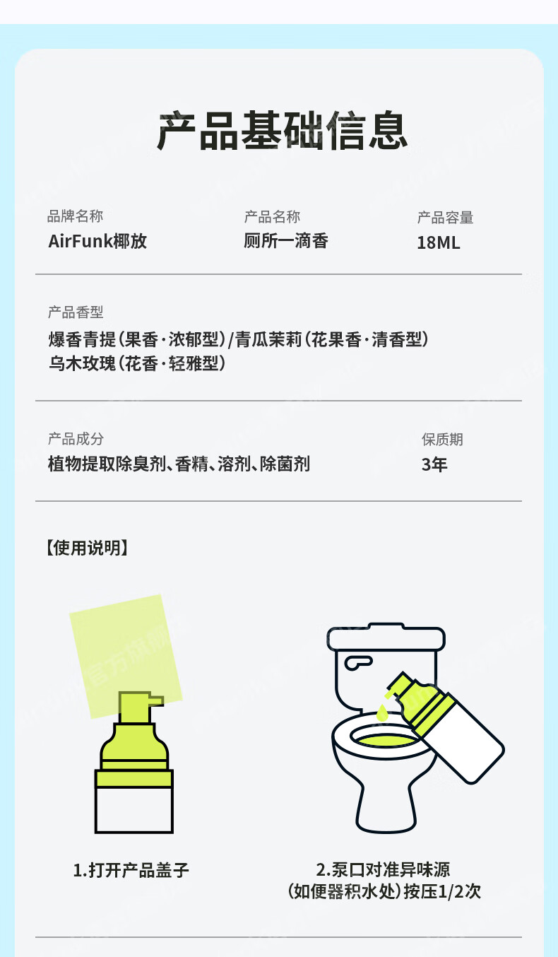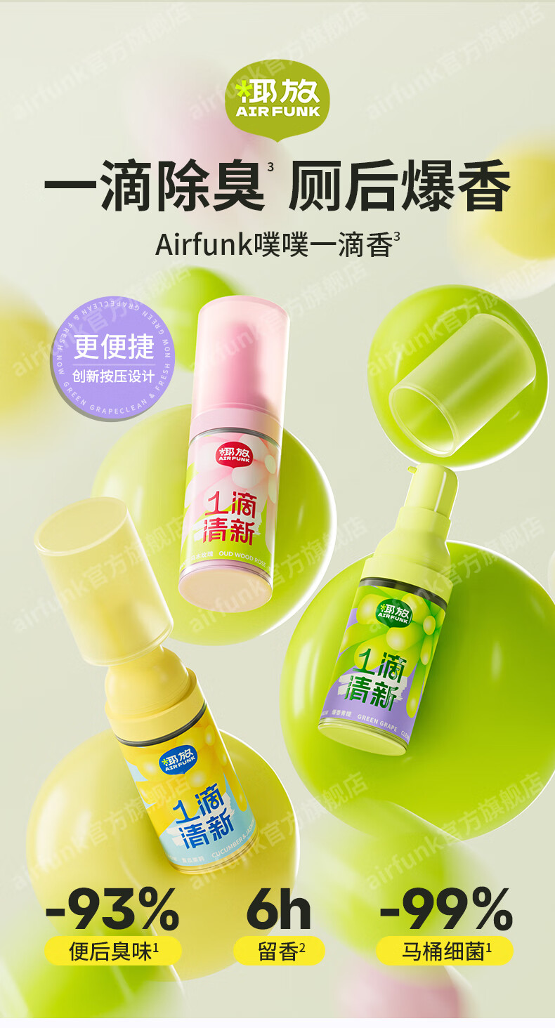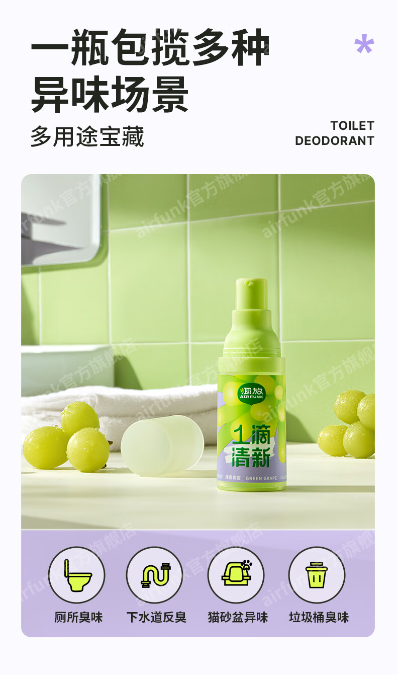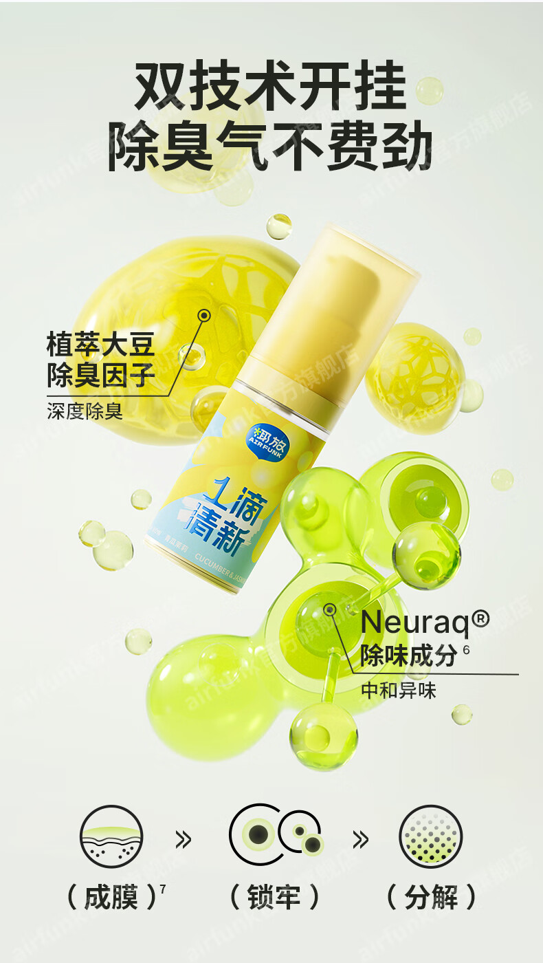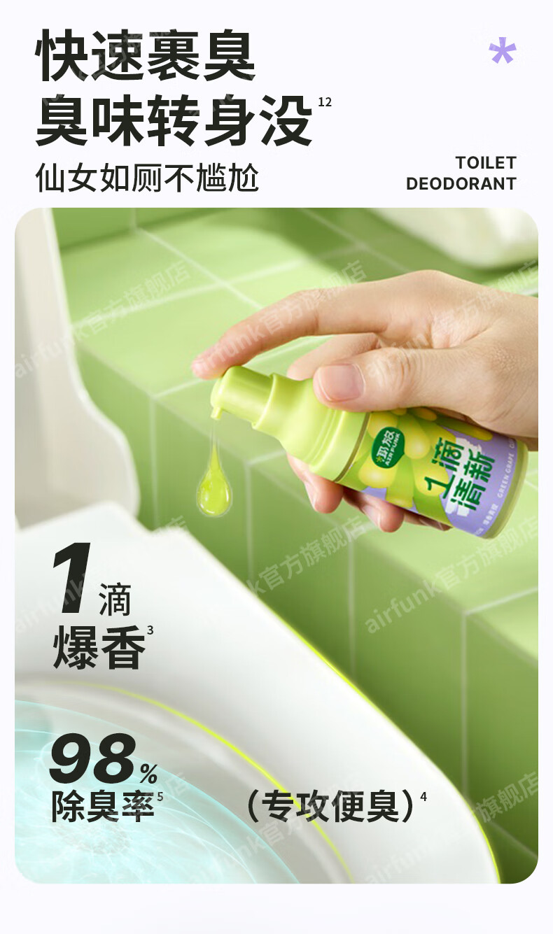 air funk一滴香厕所卫生间除臭神器空气清新剂一滴消臭元18ml 青瓜茉莉   收藏