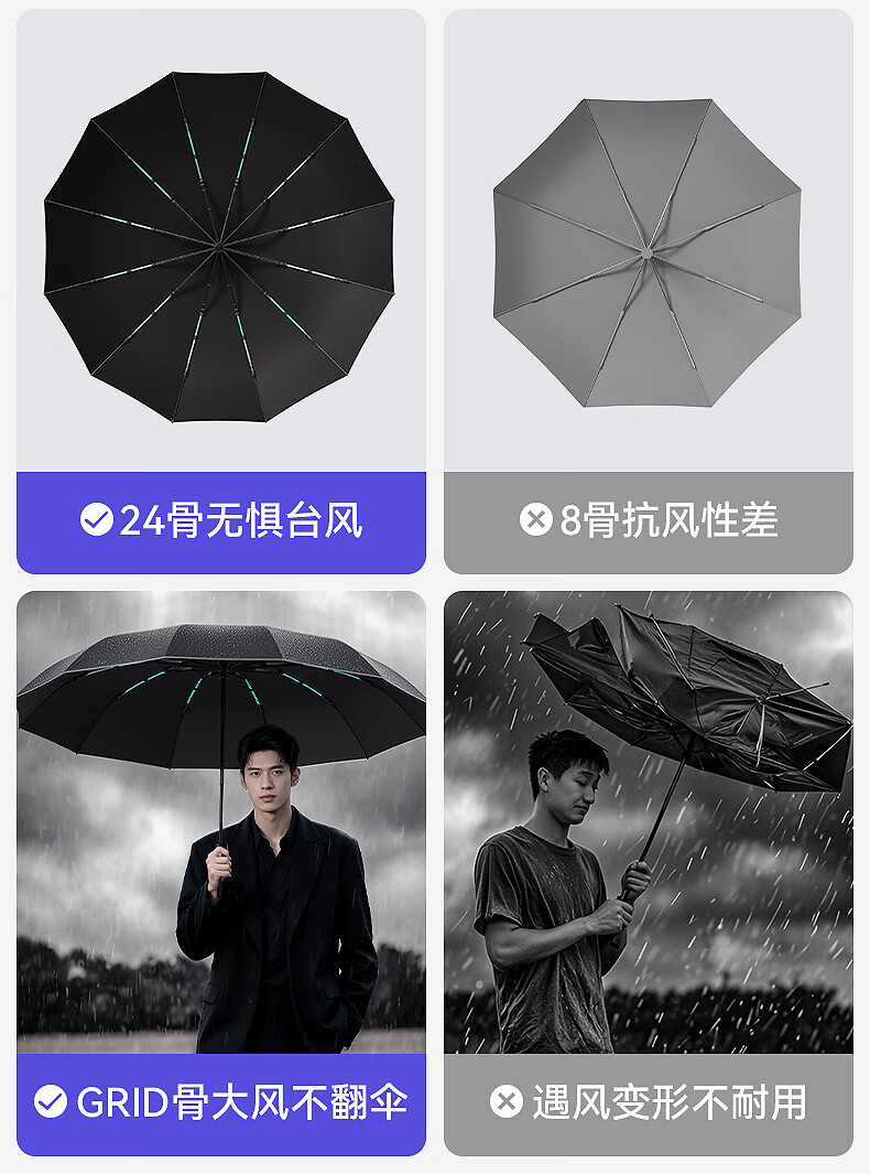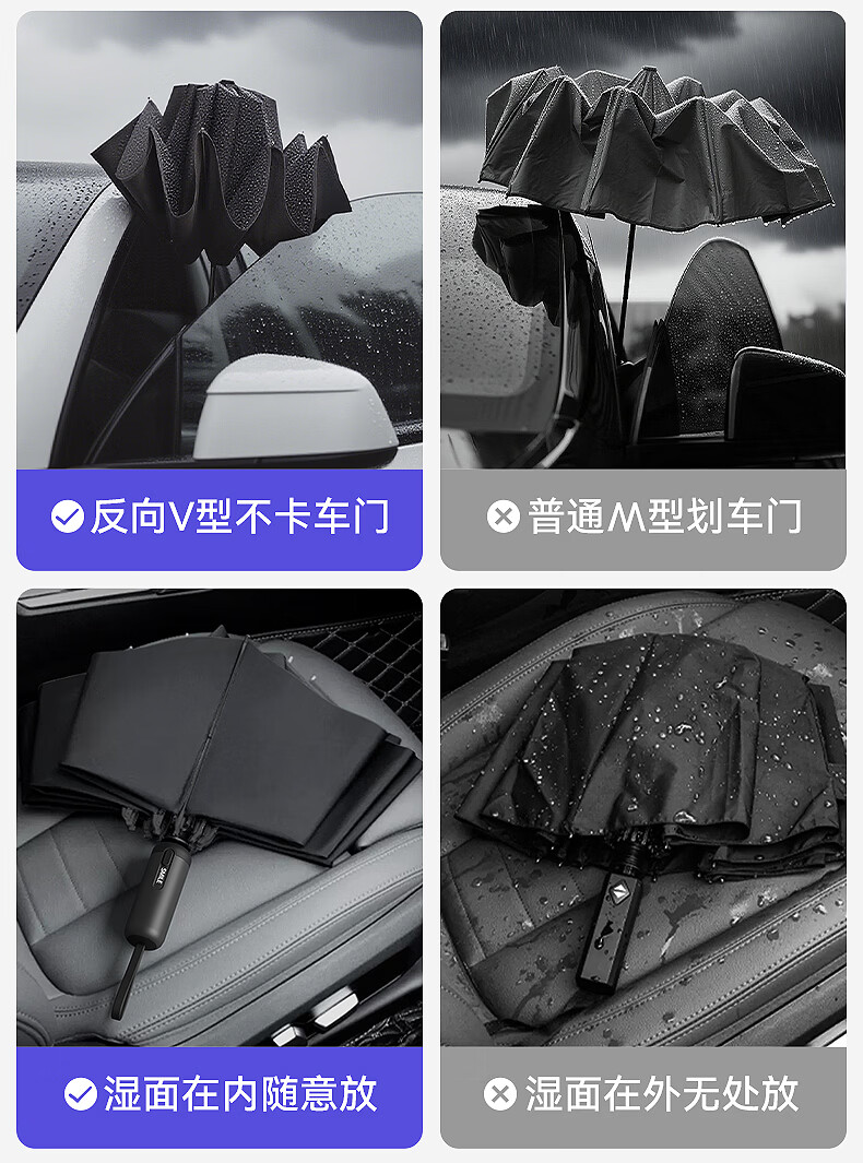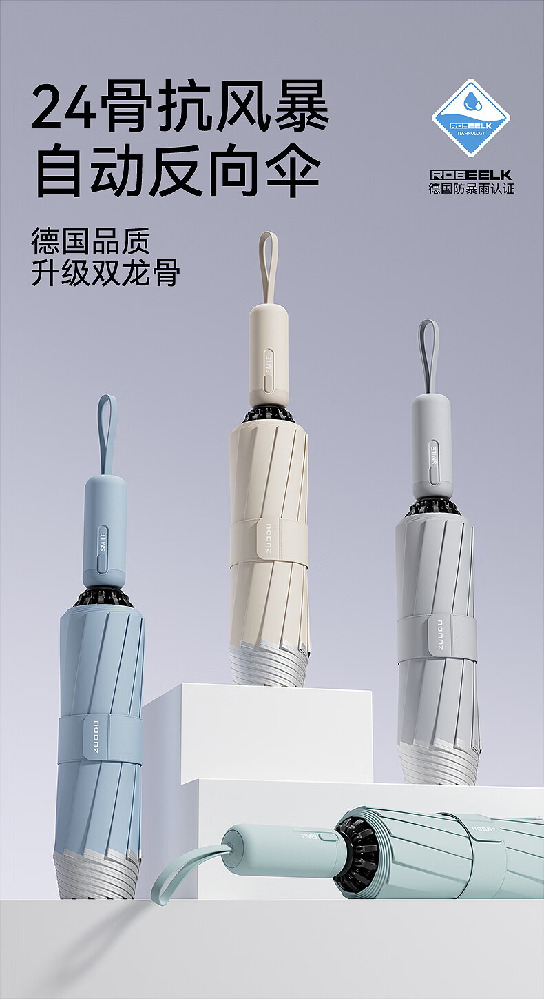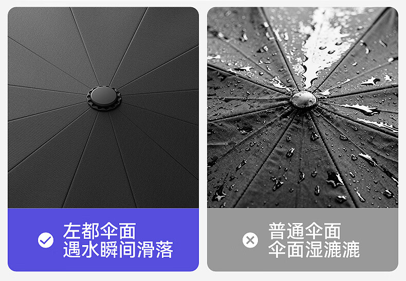 • 左都(ZUODU)全自动雨伞三折24骨女超大号加固加厚结实抗风便携折叠反向晴雨伞