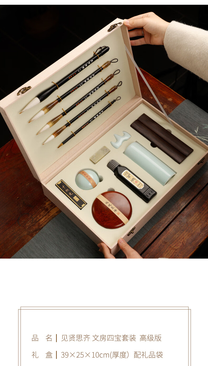 漢墨 书法毛笔套装 笔墨纸砚狼兼毫初学者入门16件套装 文房四宝高档送礼礼盒   收藏