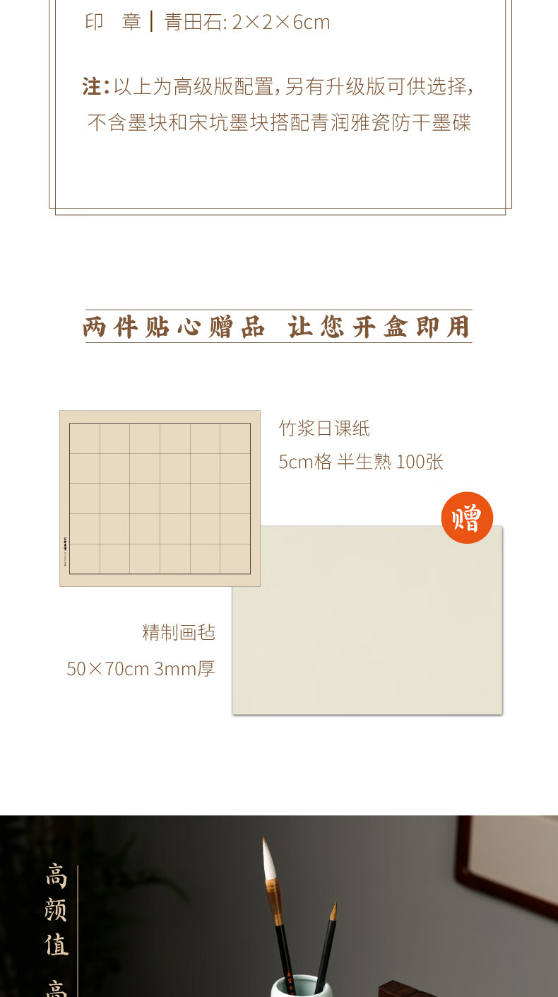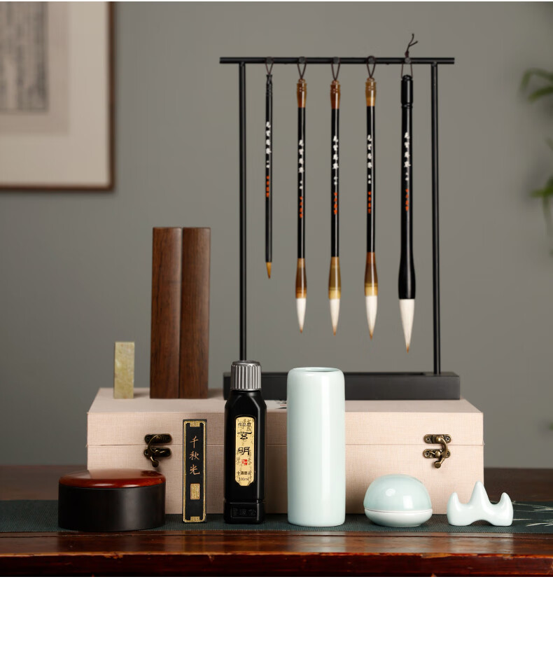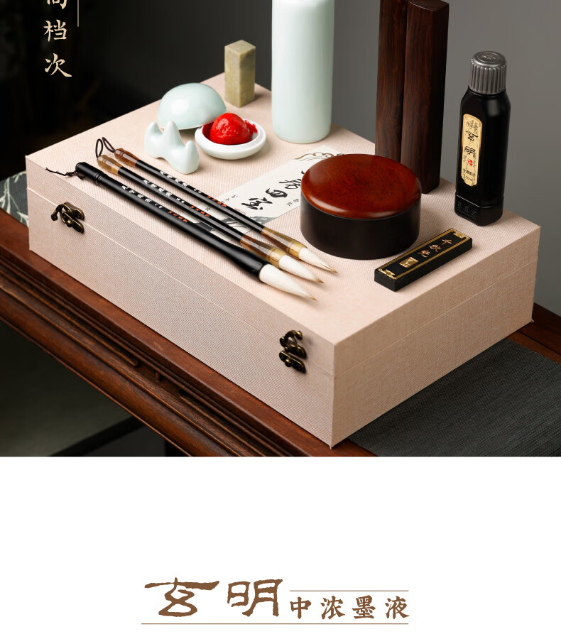 • 漢墨 书法毛笔套装 笔墨纸砚狼兼毫初学者入门16件套装 文房四宝高档送礼礼盒