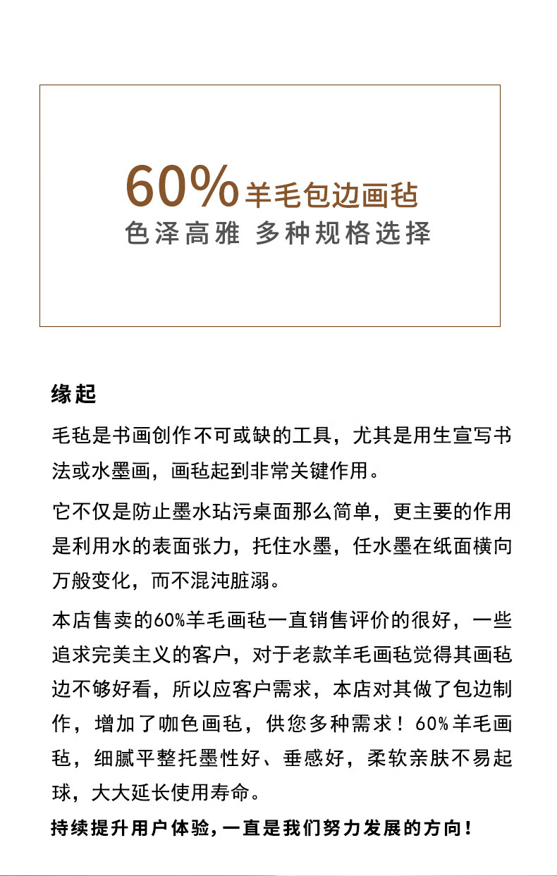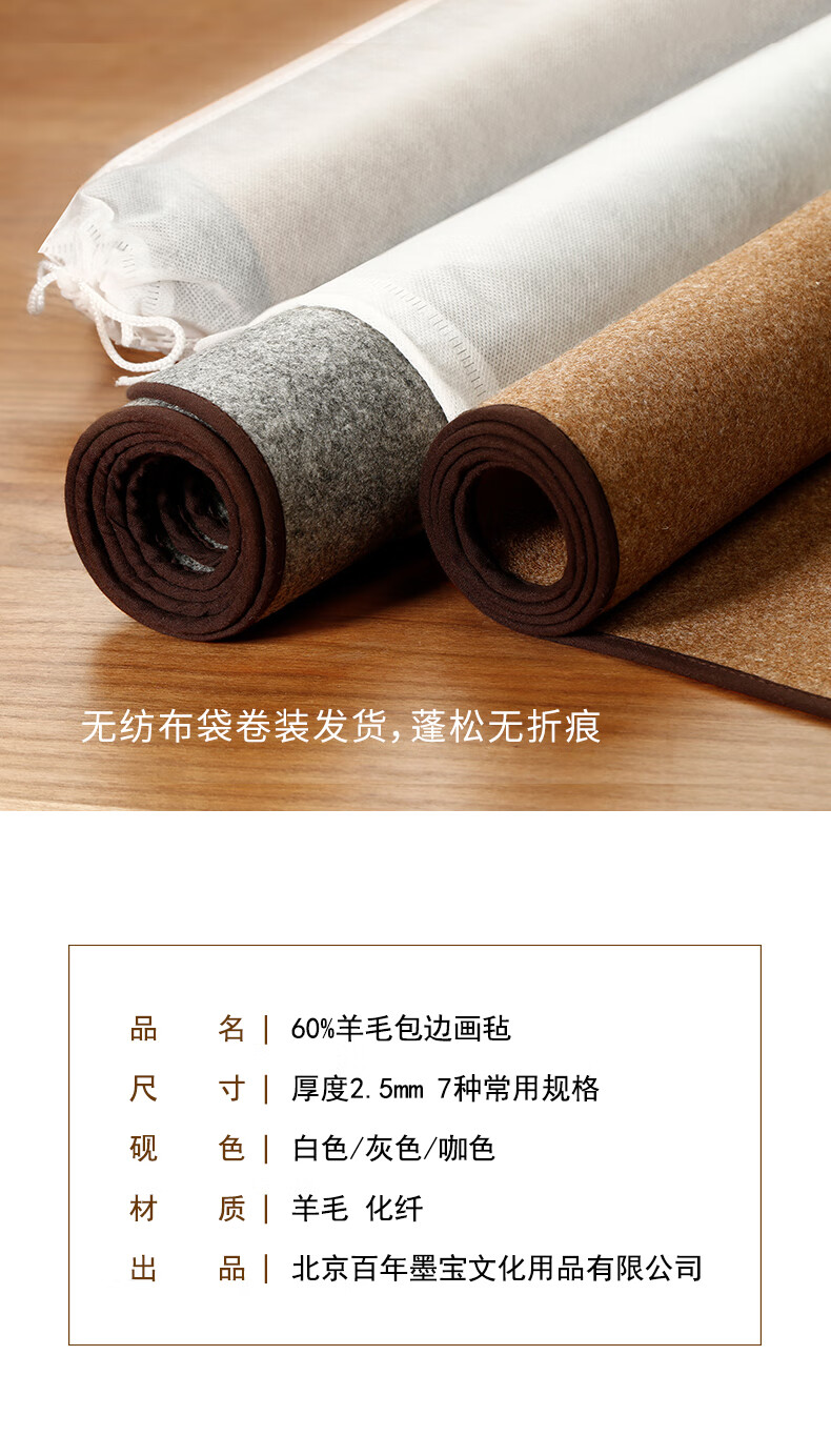 漢墨60%卷装羊毛毛毡垫 加厚耐磨书法书画灰色50*70cm毛毡垫 文房四宝写毛笔字毛毡桌布画毡   收藏