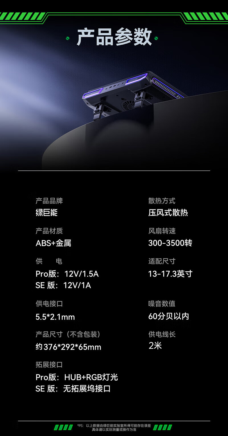 | 功能 | 可升降;单色灯光;风扇可调节;有RGB灯光 |