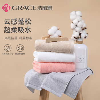 • 洁丽雅(Grace)新疆长绒棉A类抗菌毛巾4条装 纯棉加厚柔软面巾吸水洗脸巾素色
