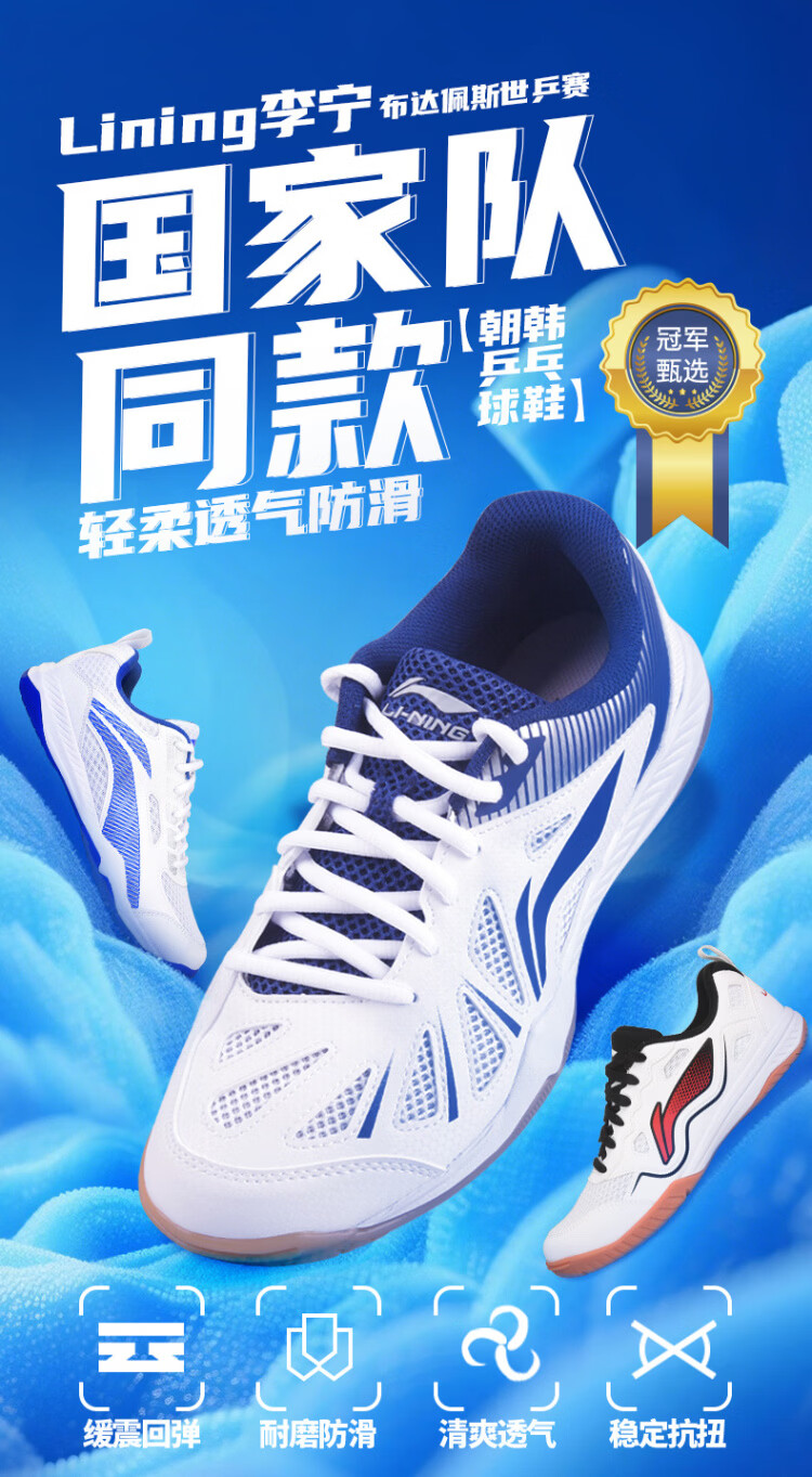 李宁乒乓球鞋男女款专业乒乓球运动鞋牛筋色底旋风APTT017-2 白蓝37.5   收藏