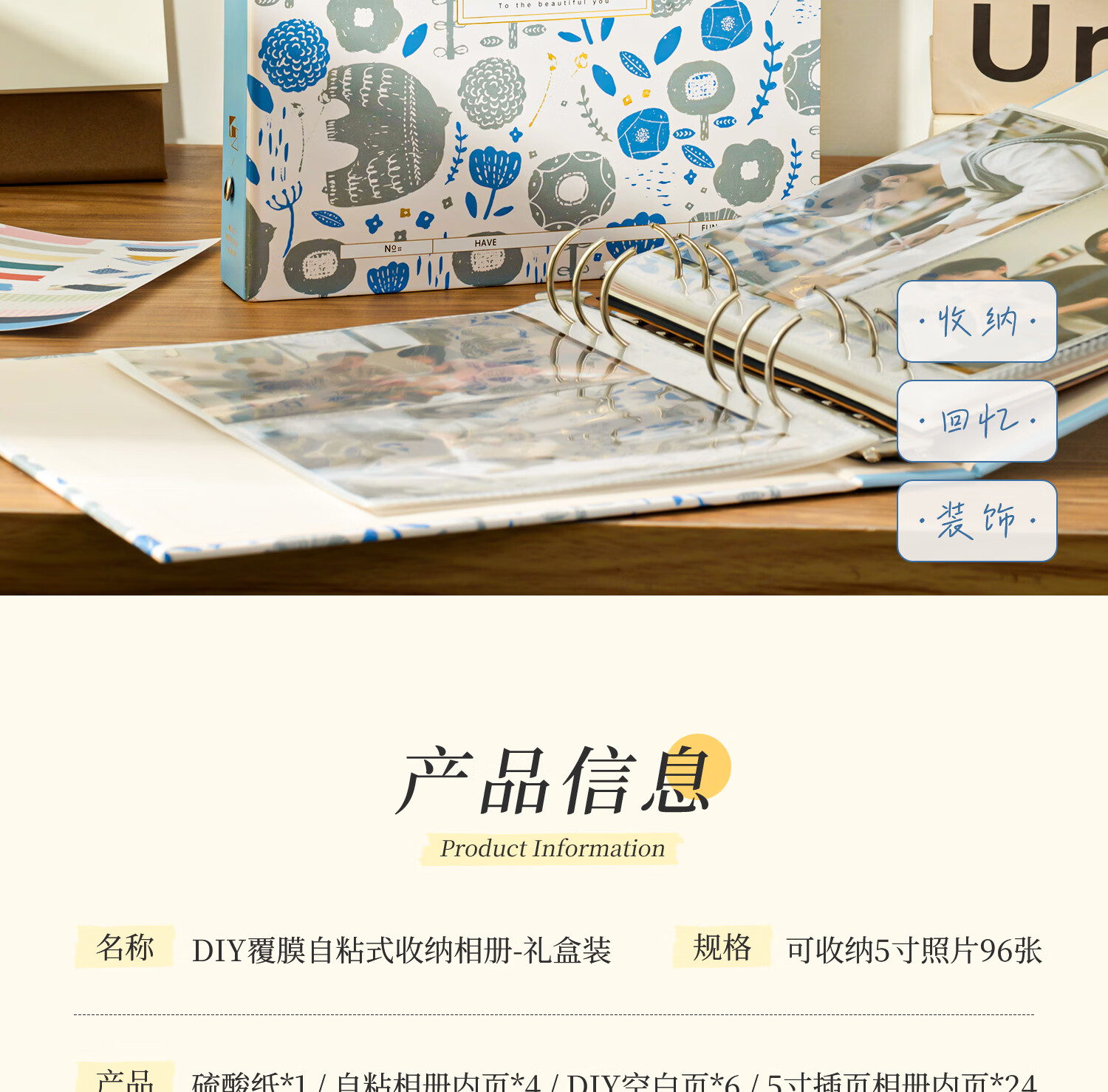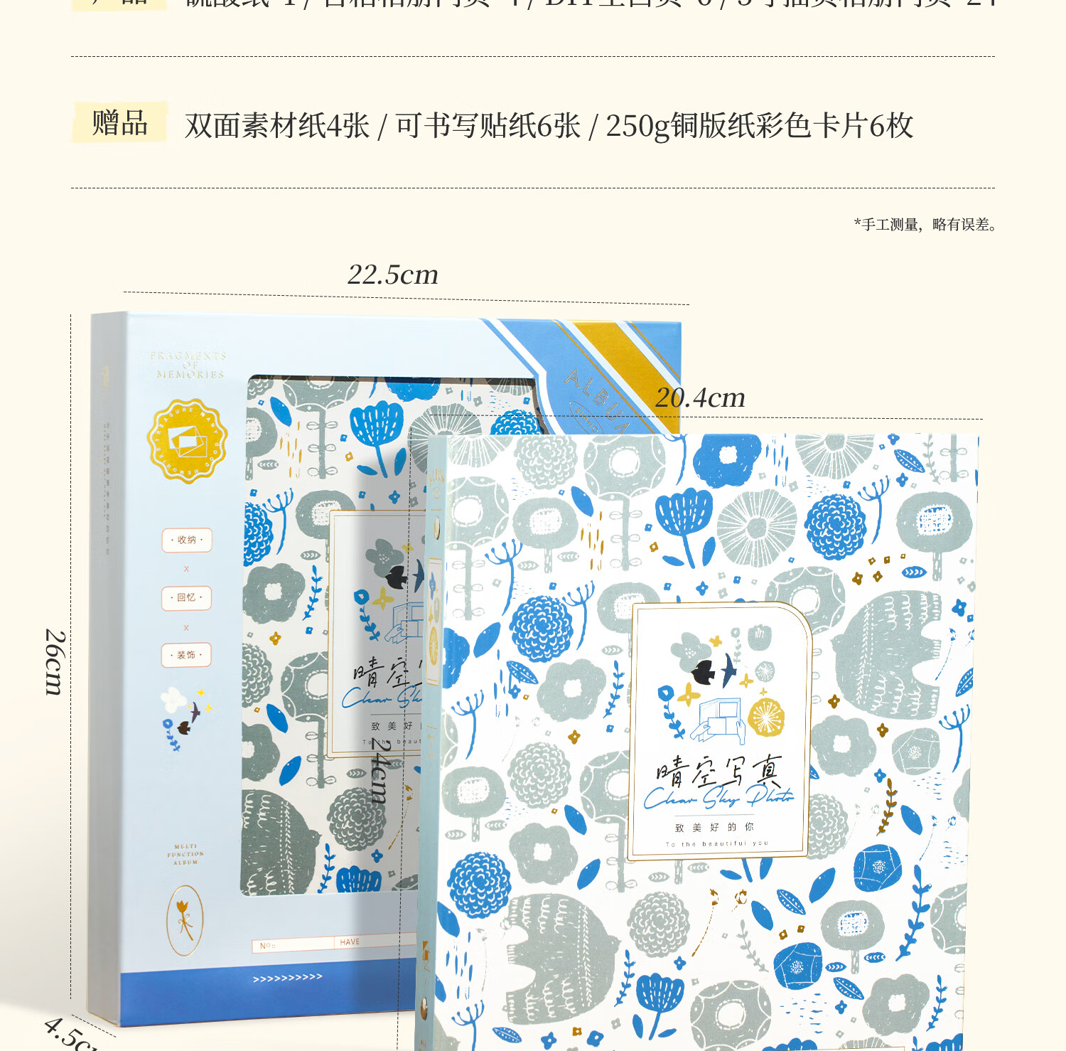 • 洧宜相册本纪念册diy覆膜粘贴式手工家庭版大容量5寸相册情侣宝宝影集 晴空写真【礼盒款】照片书