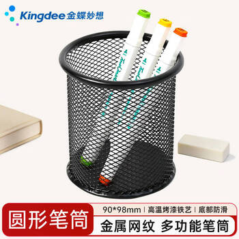 金蝶(kingdee)金属网格圆形笔筒 黑色简约创意桌面收纳盒摆件 办公用品   收藏