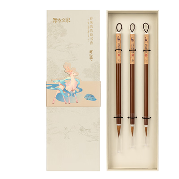 • 得力(deli)东方文彩 毛笔狼毫中楷小楷学生书法国画初学者入门毛笔3支装行书 DF501 开学用品生日礼物