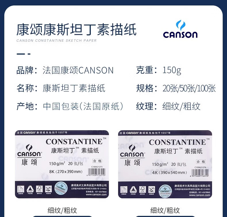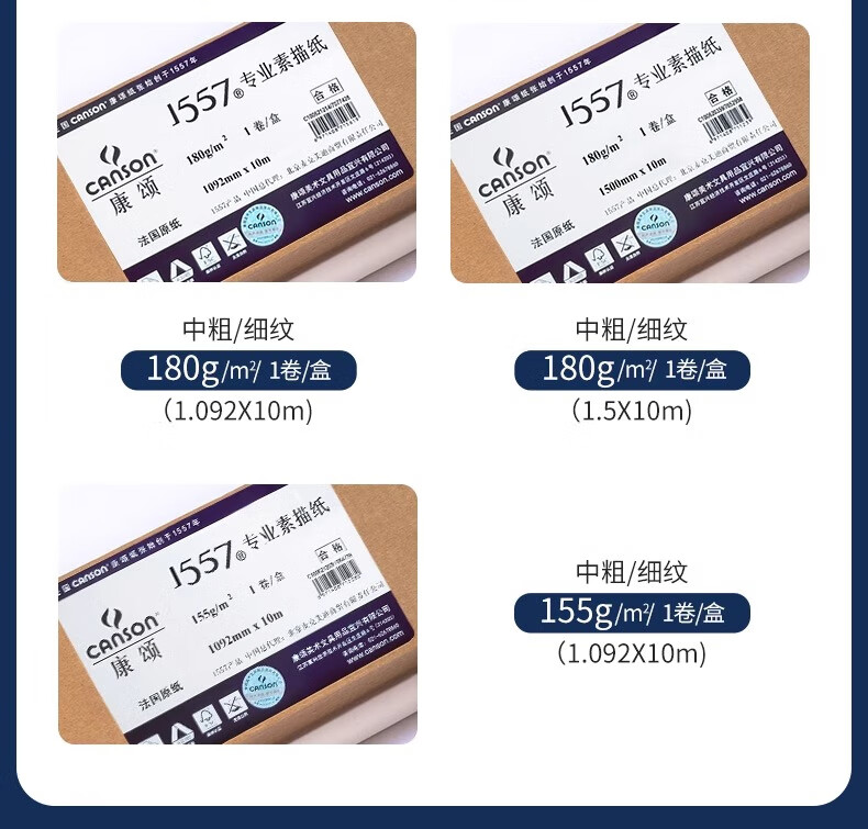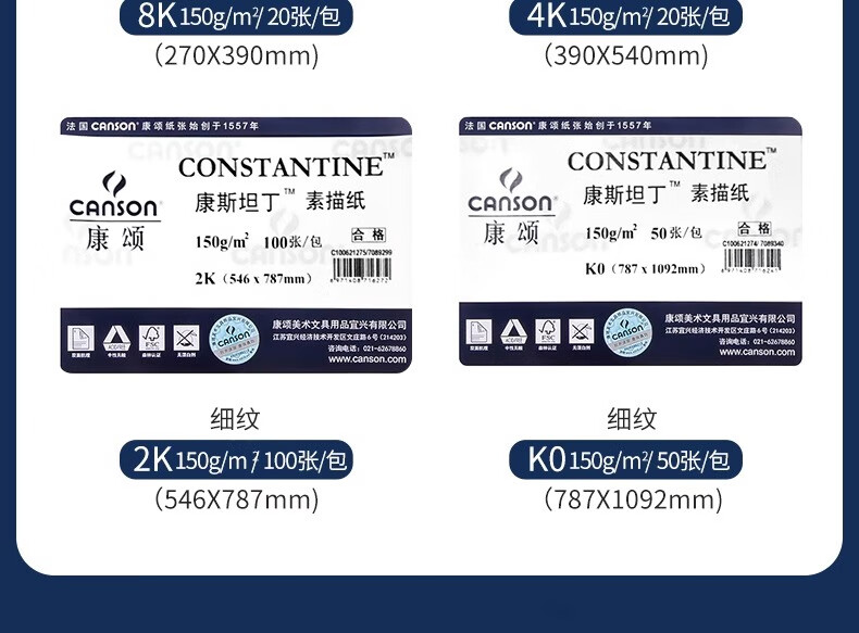 • 康颂1557系列素描纸中粗细纹双面4K180g10张速写