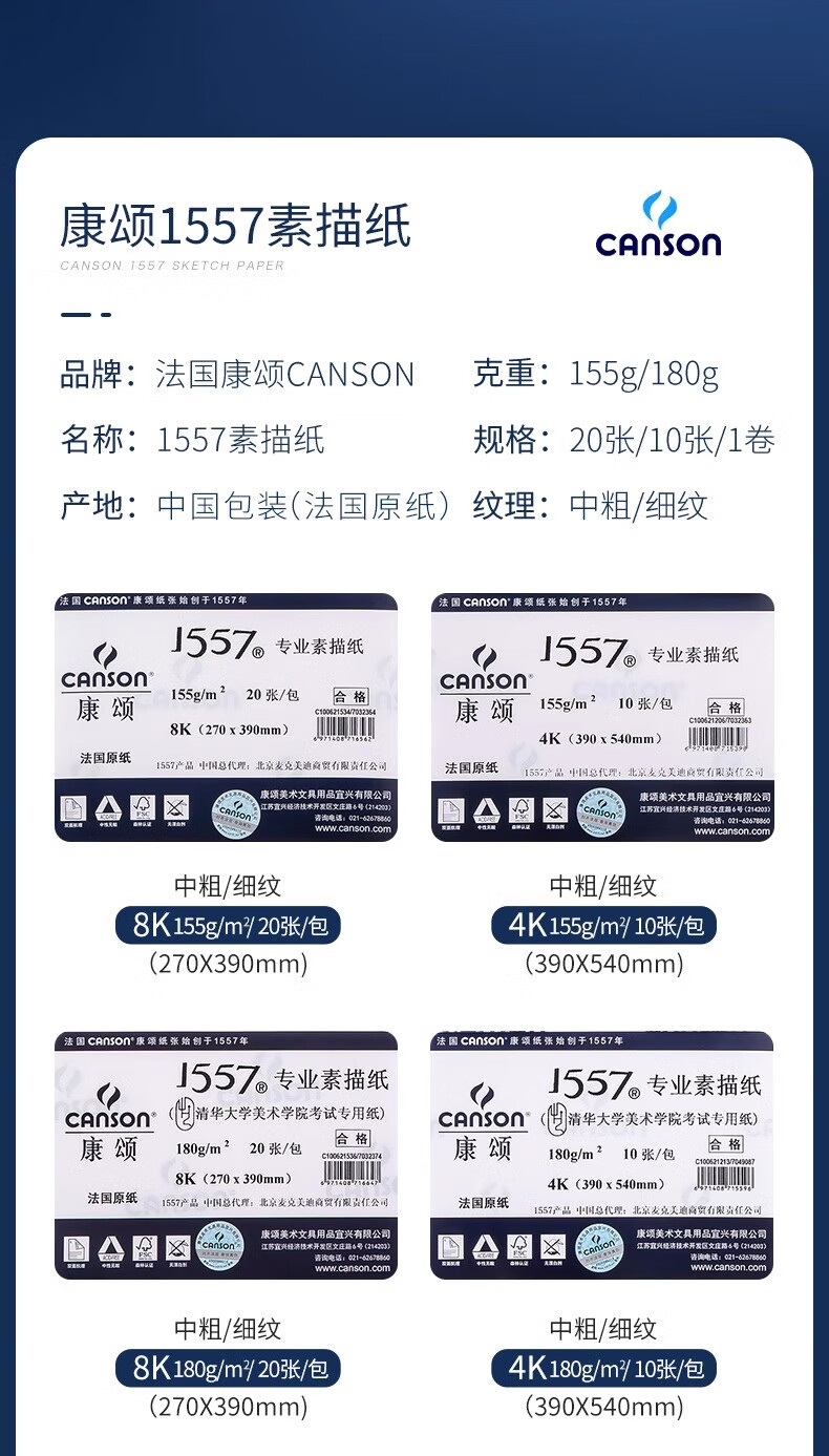 供应商:京东 品牌:康颂(CANSON) 产地:中国大陆 重量:0.390 销售单位:张 包装清单:1557素描纸 4K 180g10张 售后信息:不支持7天无理由退货