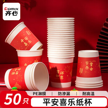 齐心(COMIX)200ml 喜庆纸杯婚庆一次性杯子红色节假日酒宴 50只平安喜乐 L310   收藏