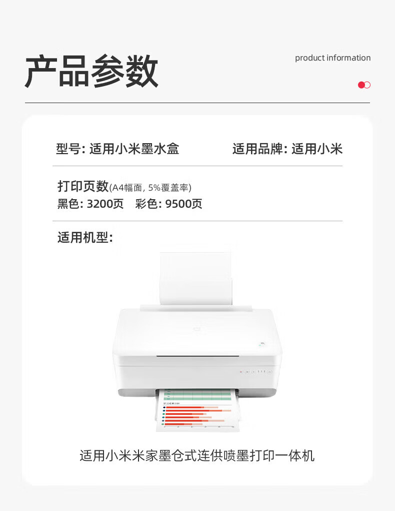 | 墨盒型号 | 适用小米米家喷墨打印机一体机墨盒 |