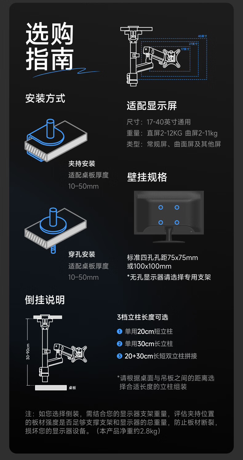 | 适配尺寸 | 21.5英寸及以下;22英寸-27英寸;28英寸-32英寸 |